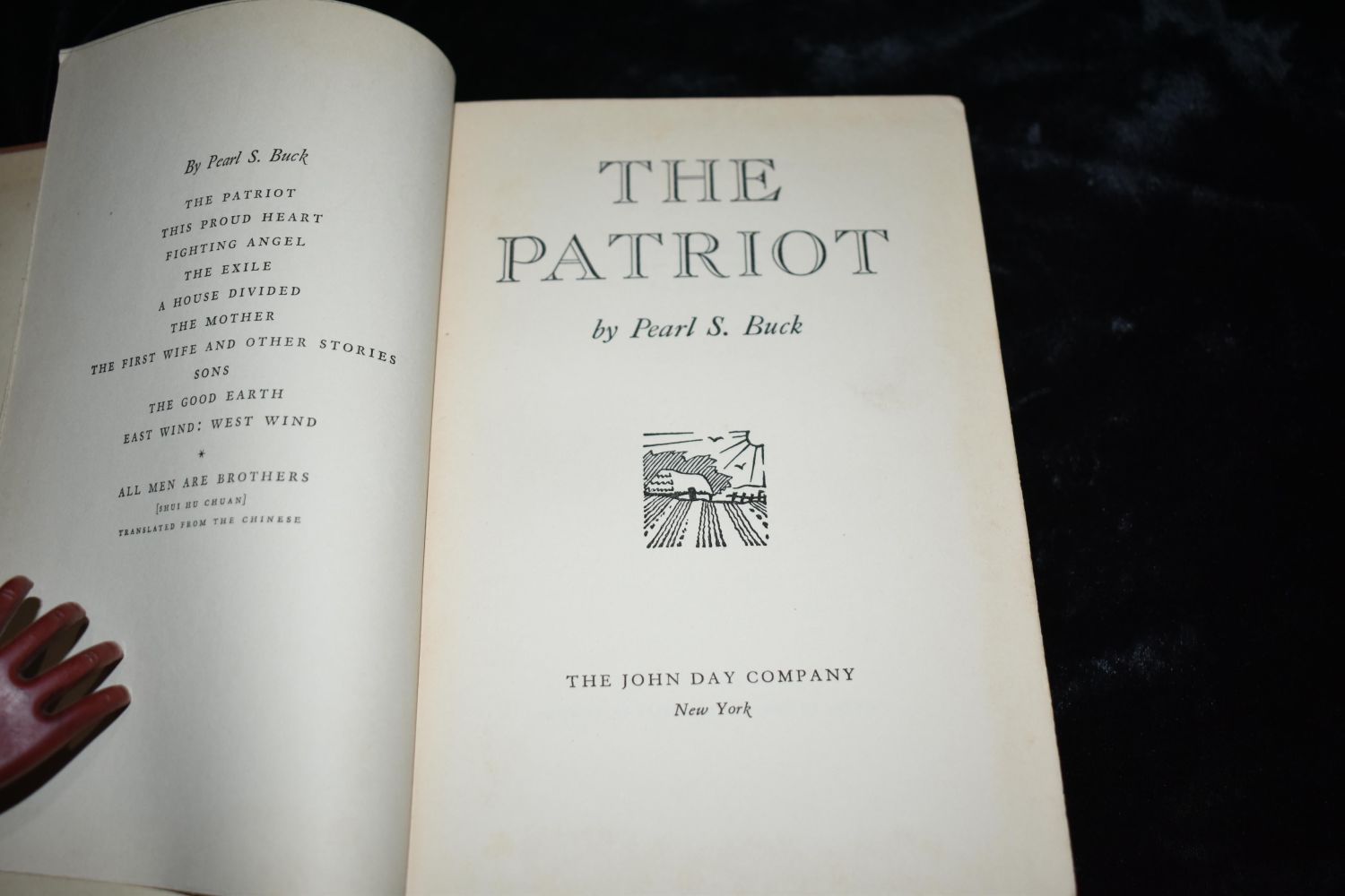 The Patriot by Pearl S. Buck. New York : The John Day Company 1939. Very Good condition. Publishers original peach cloth hardback with gold gilt to cover and spine. 372 pgs. 8 3/8" by 5 1/4"
