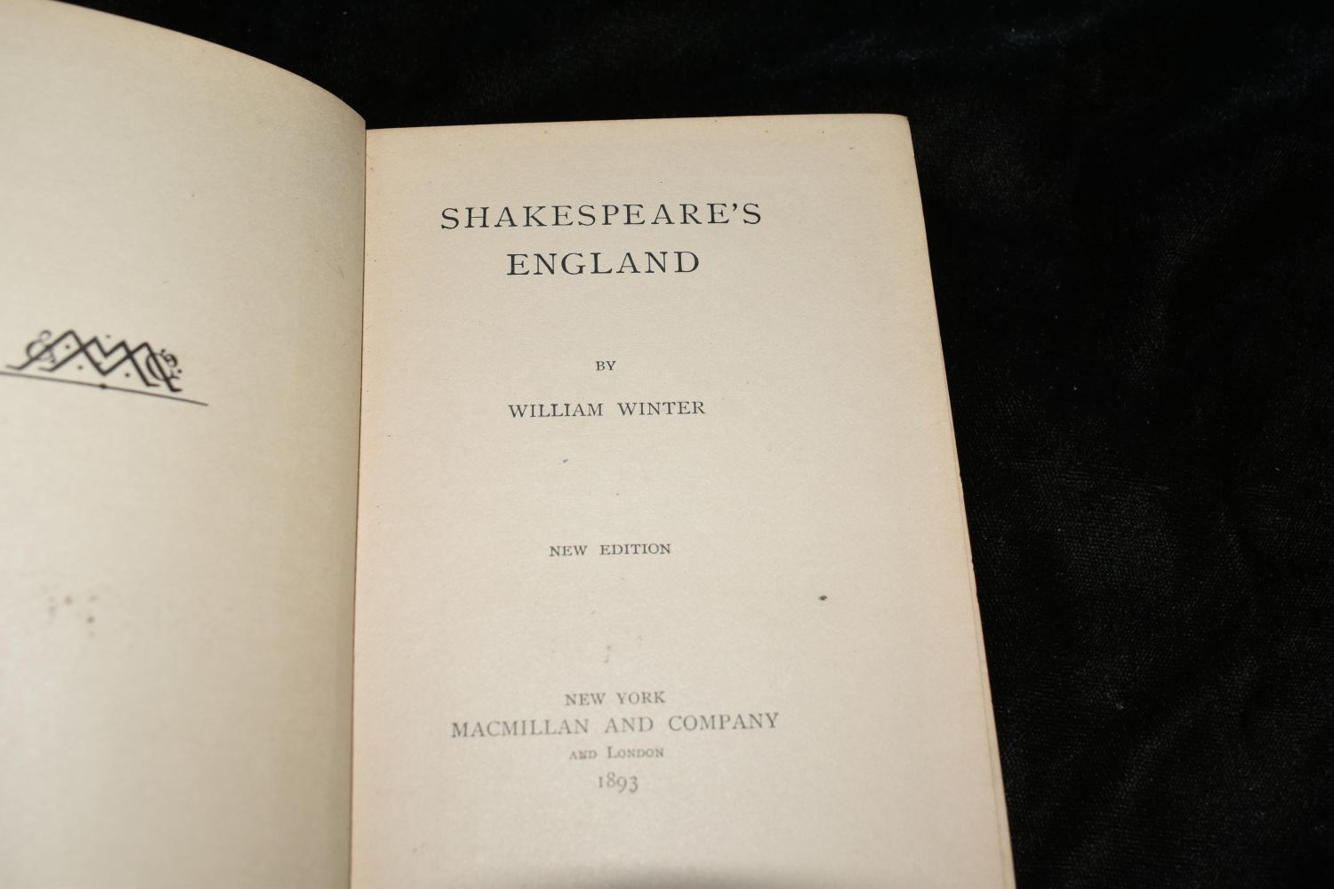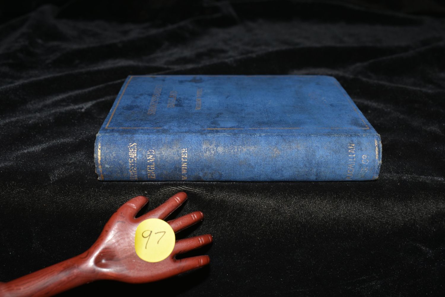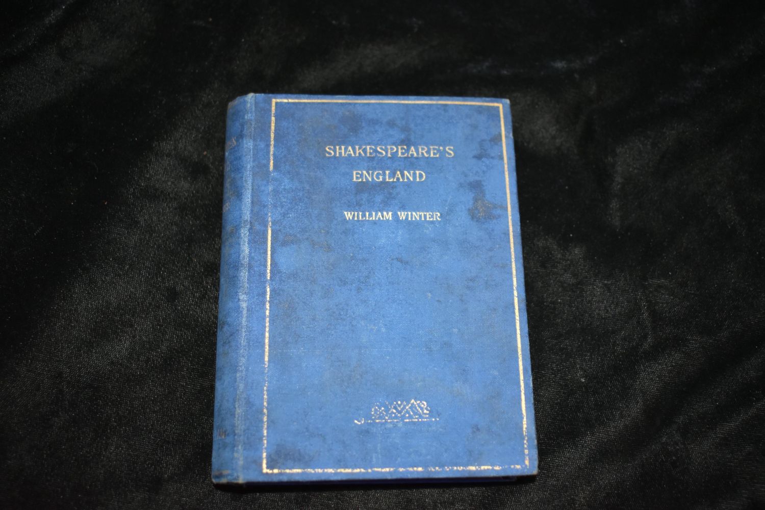 Shakespeares England by William Winter. Published by Macmillan and Co., New York, London (1893). Fairly good condition. Cover is faded/blemished and has partial seperation inside at the board hinges. Pages are all in very good condition. Publishers original blue cloth hardback with gold gilt to cover and spine. Gold gilt to page tops. 274 pgs plus ads. 5 3/8" by 4 3/4"