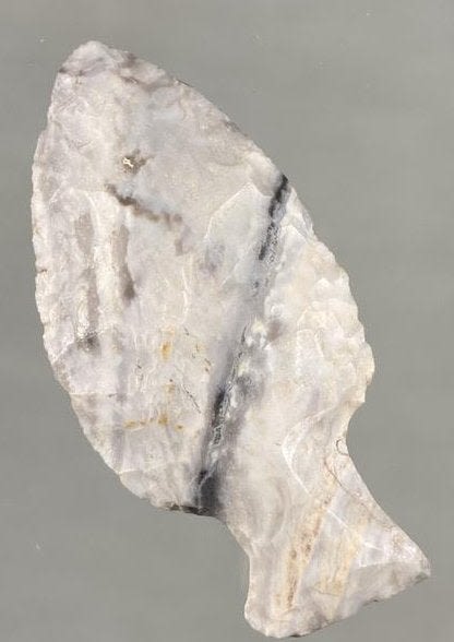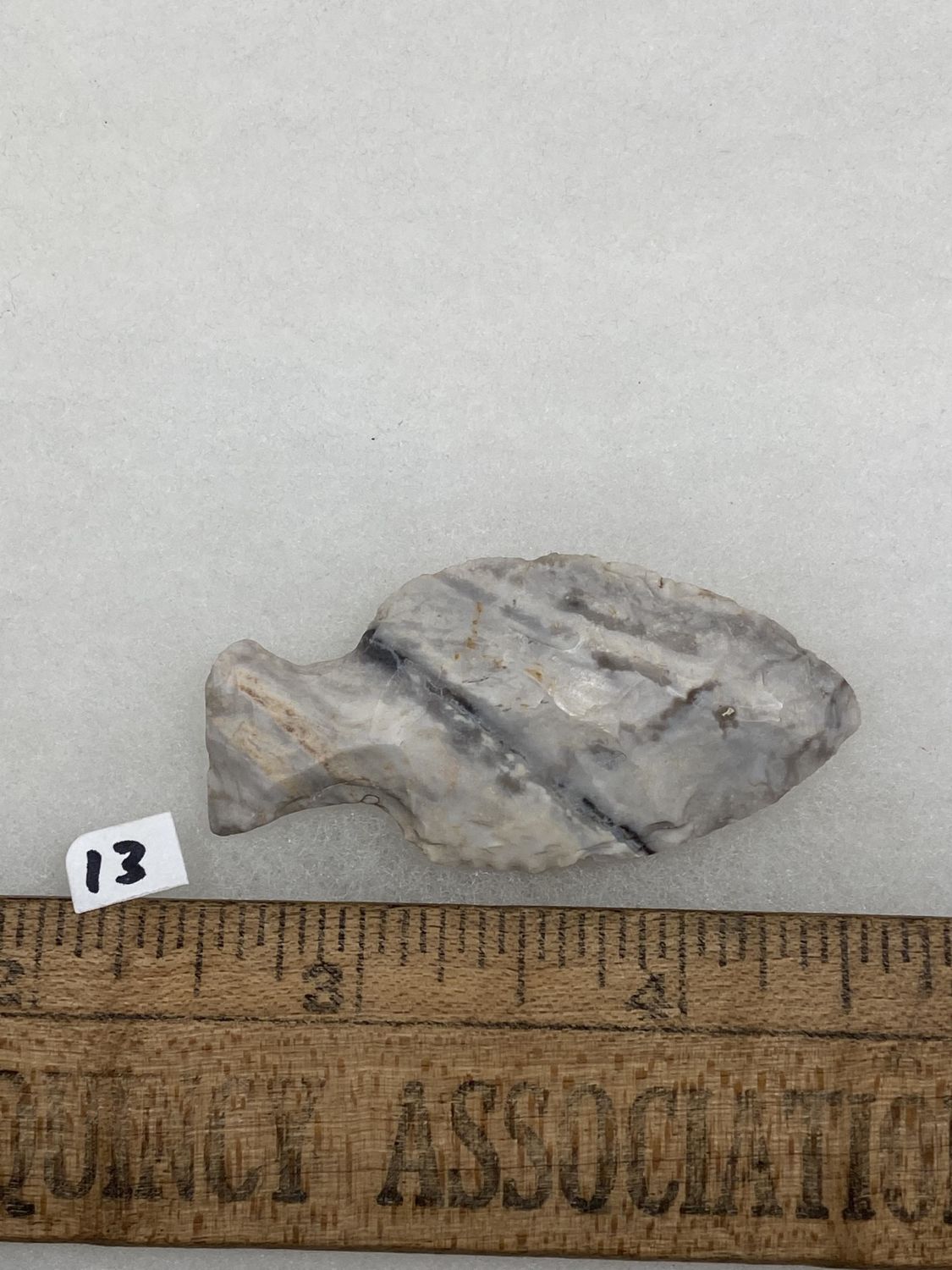 2 1/8" COLORFUL MOZARKITE TABLE ROCK FOUND IN SALINE COUNTY MISSOURI, INDIAN ARROWHEAD ARTIFACT