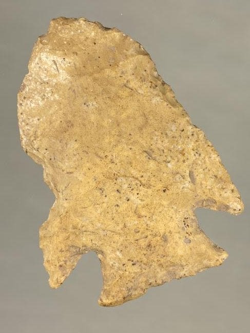 2 1/4" KNOBBED HARDIN FOUND IN CASS COUNTY ILLINOIS, INDIAN ARROWHEAD ARTIFACT