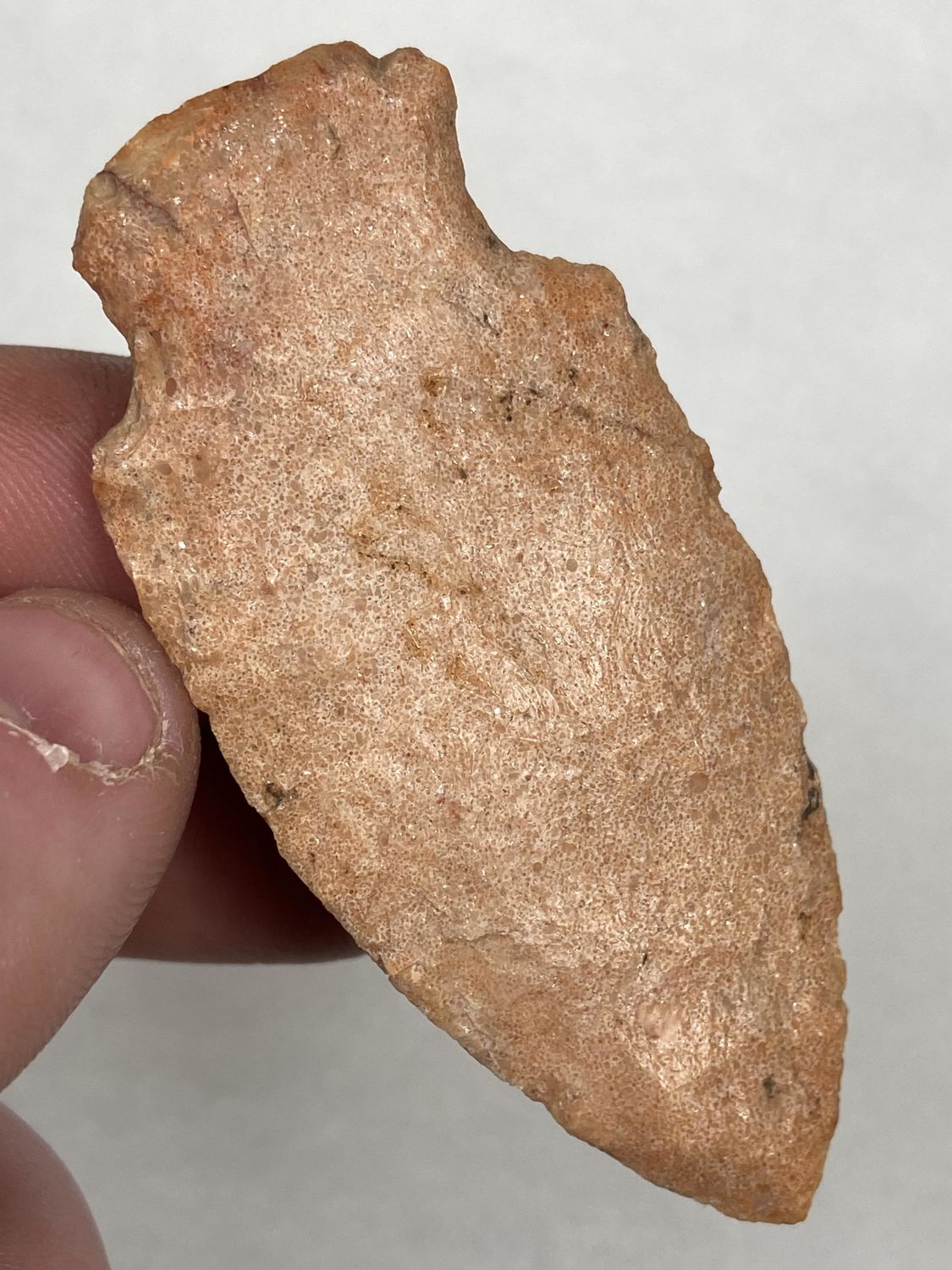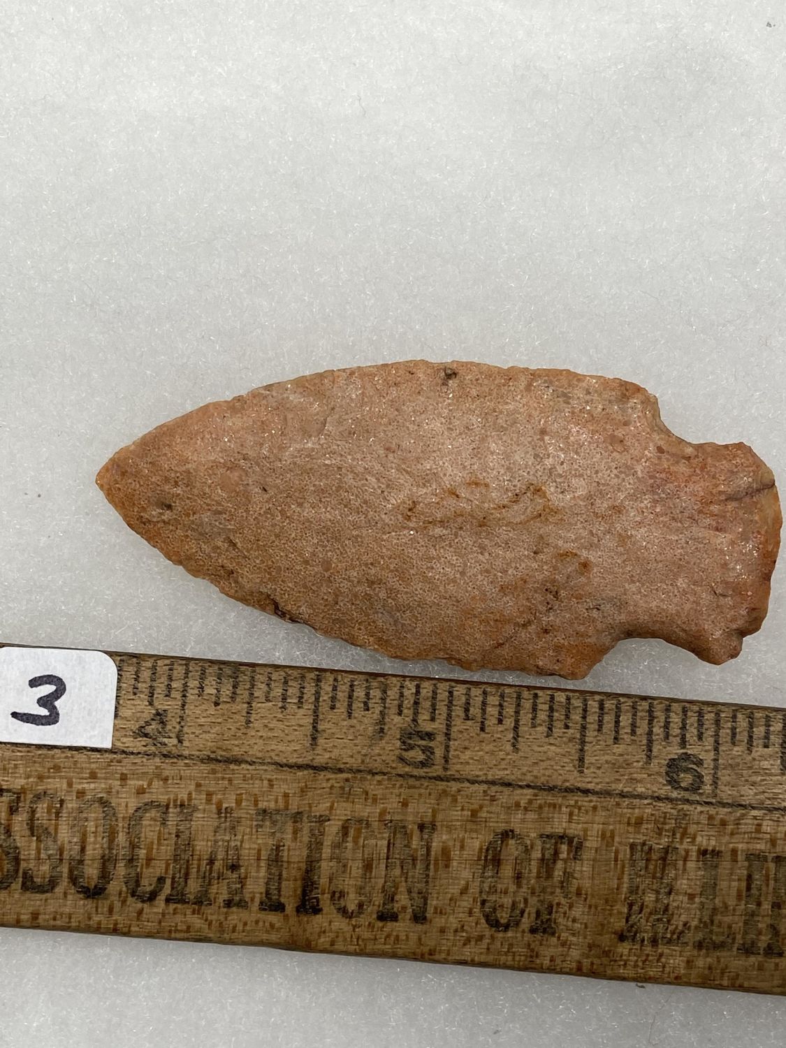 2 11/16" SUGARQUARTZ HOPEWELL FOUND IN LINCOLN COUNTY MISSOURI, WELL FLAKED, INDIAN ARROWHEAD ARTIFACT