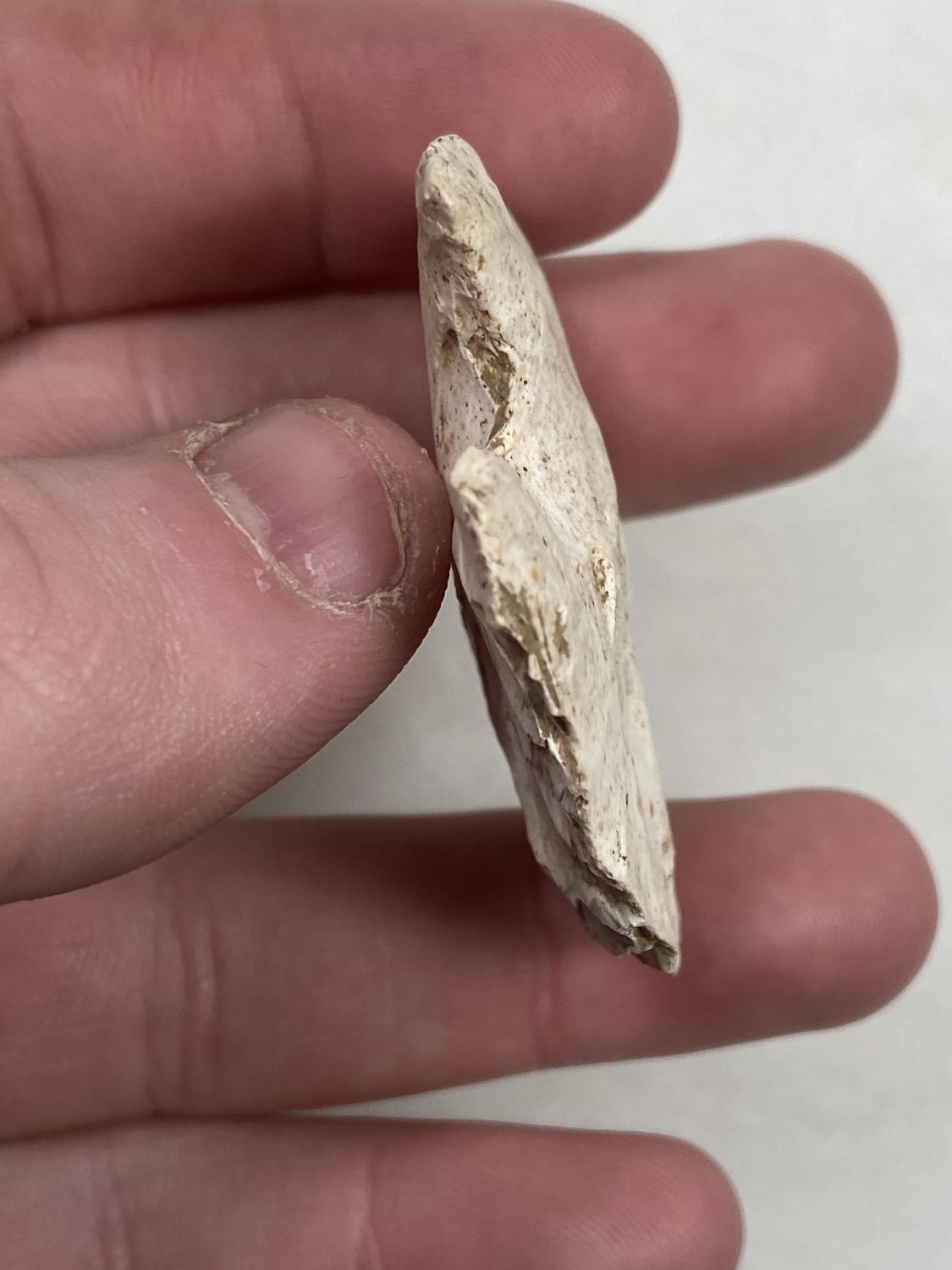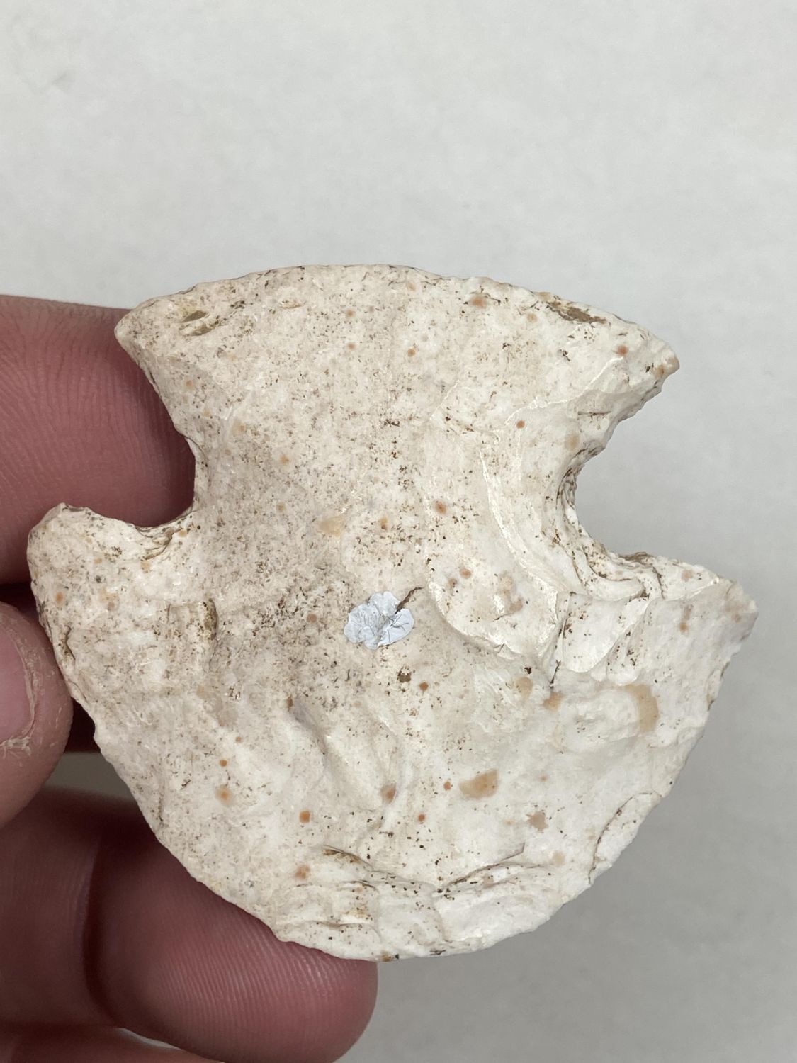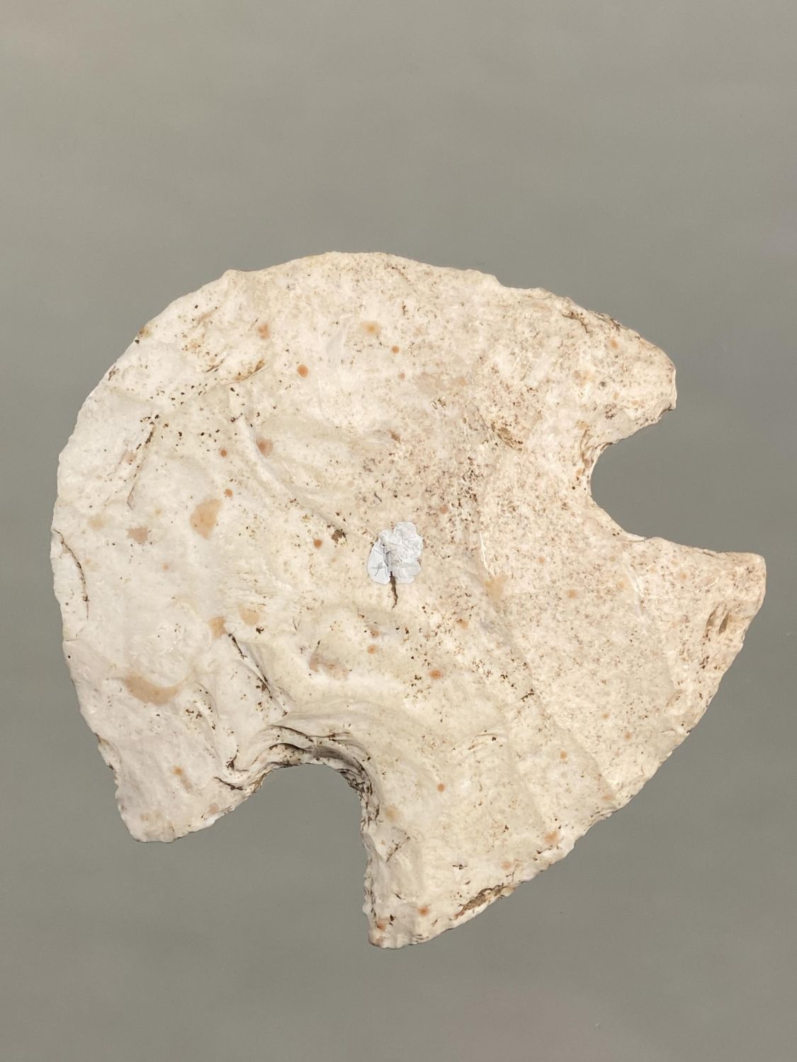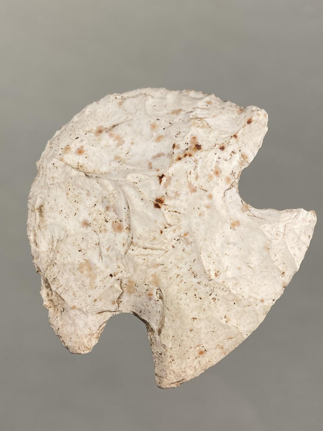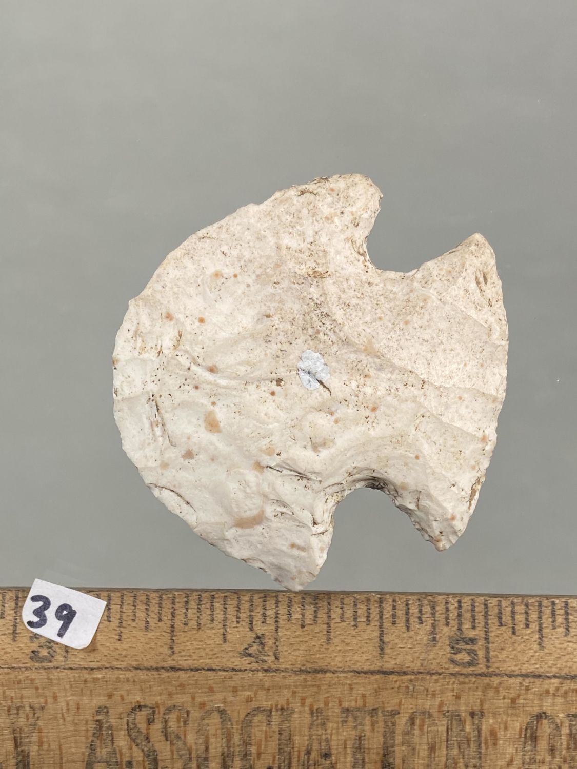 2 1/8" WIDE HOPEWELL SNYDERS BLUNT / HAFTED SCRAPER FOUND IN CALHOUN COUNTY ILLINOIS, INDIAN ARROWHEAD ARTIFACT