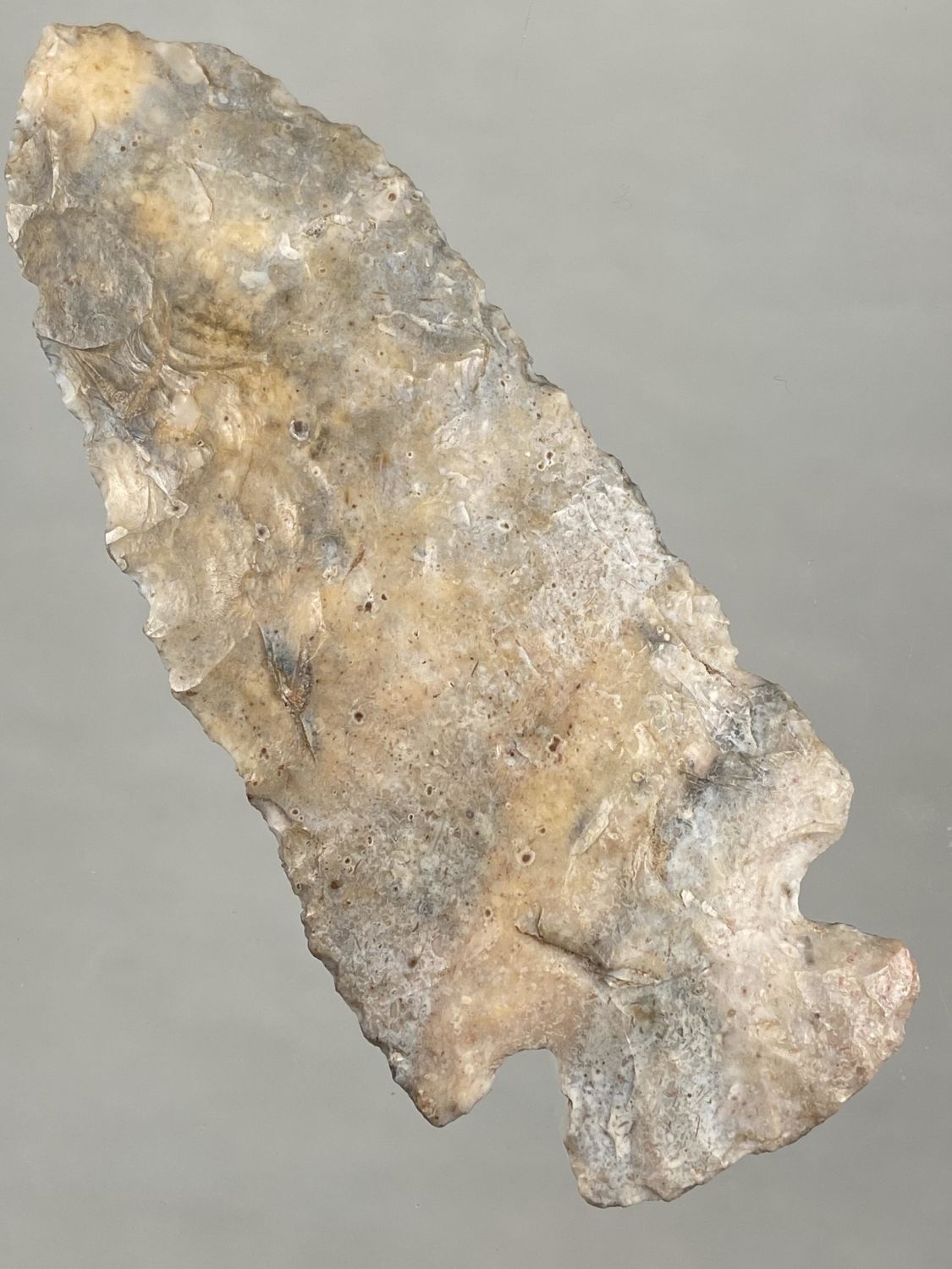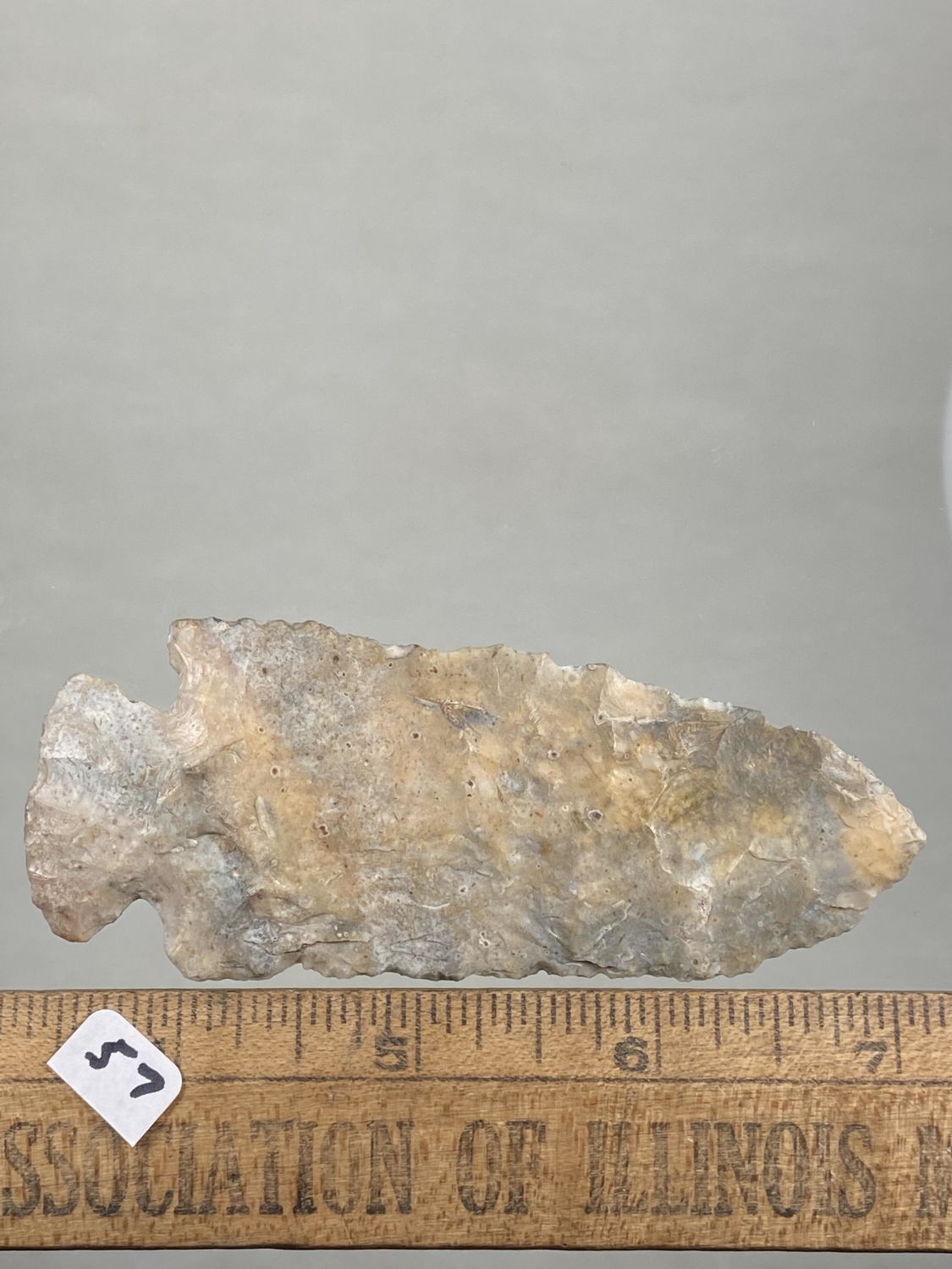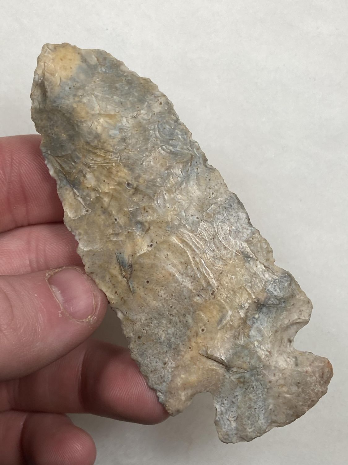 3 13/16" CREEK STAINED FERRY FOUND IN ADAMS COUNTY ILLINOIS, INDIAN ARROWHEAD ARTIFACT
