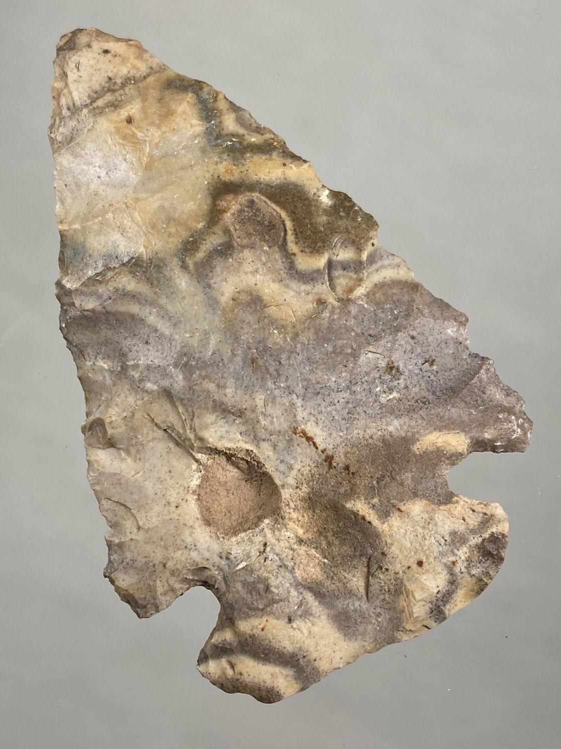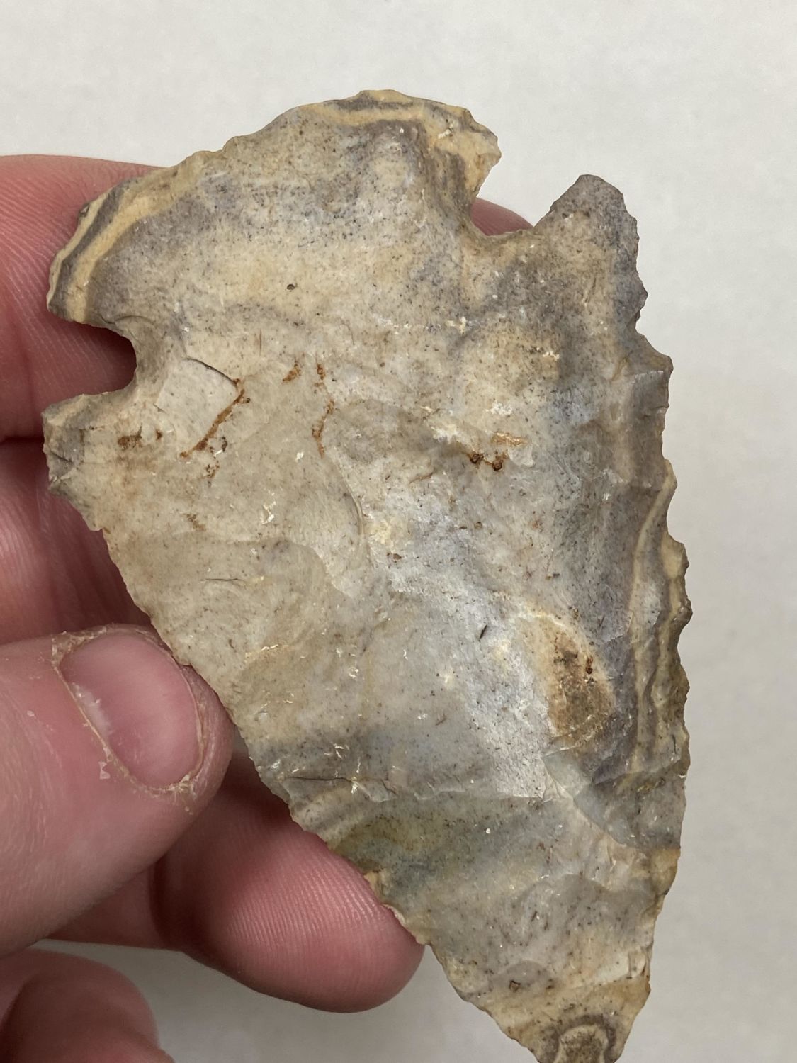 2 7/8" COLORFUL DOVETAIL FOUND IN SALINE COUNTY MISSOURI, INDIAN ARROWHEAD ARTIFACT