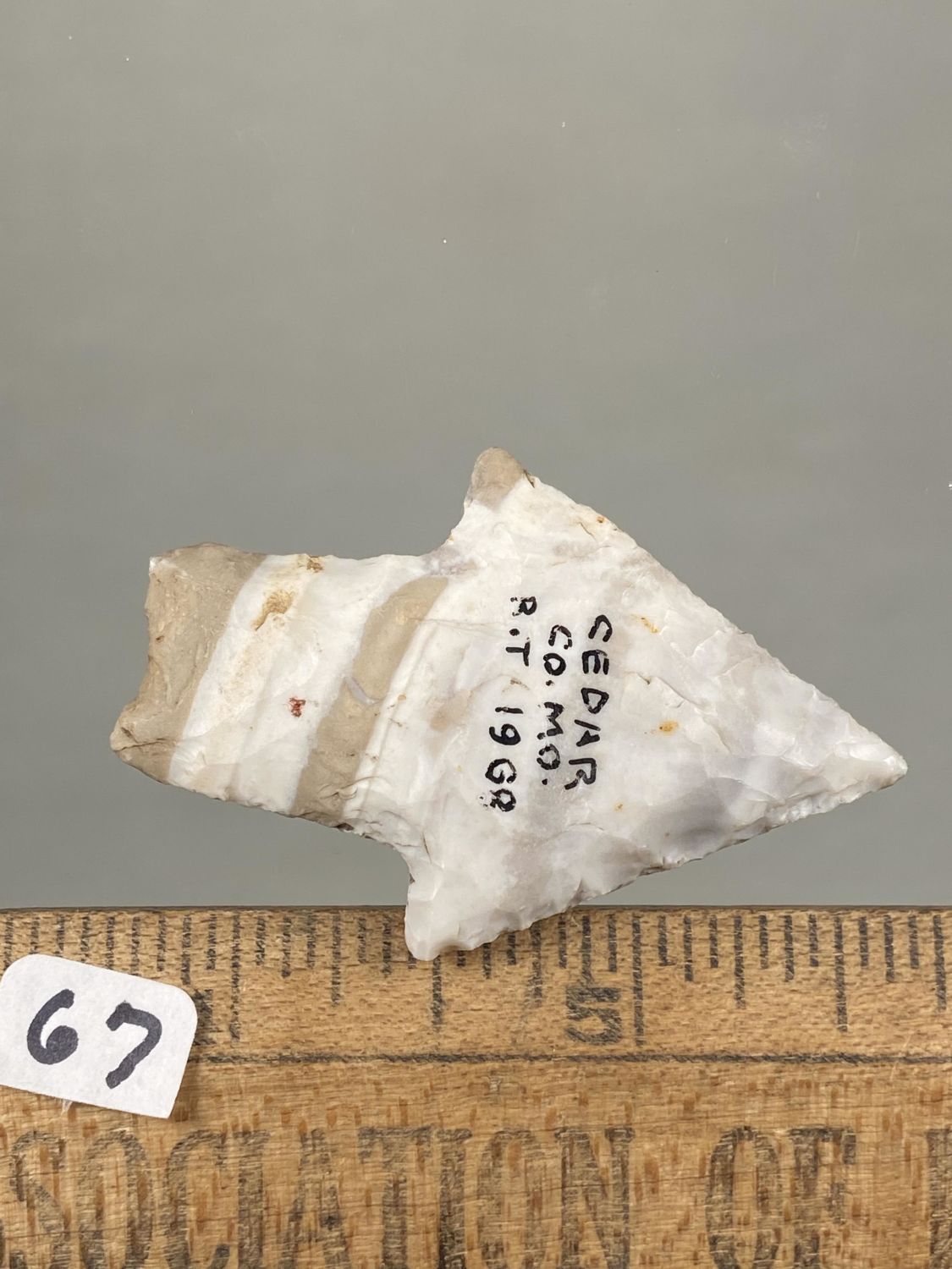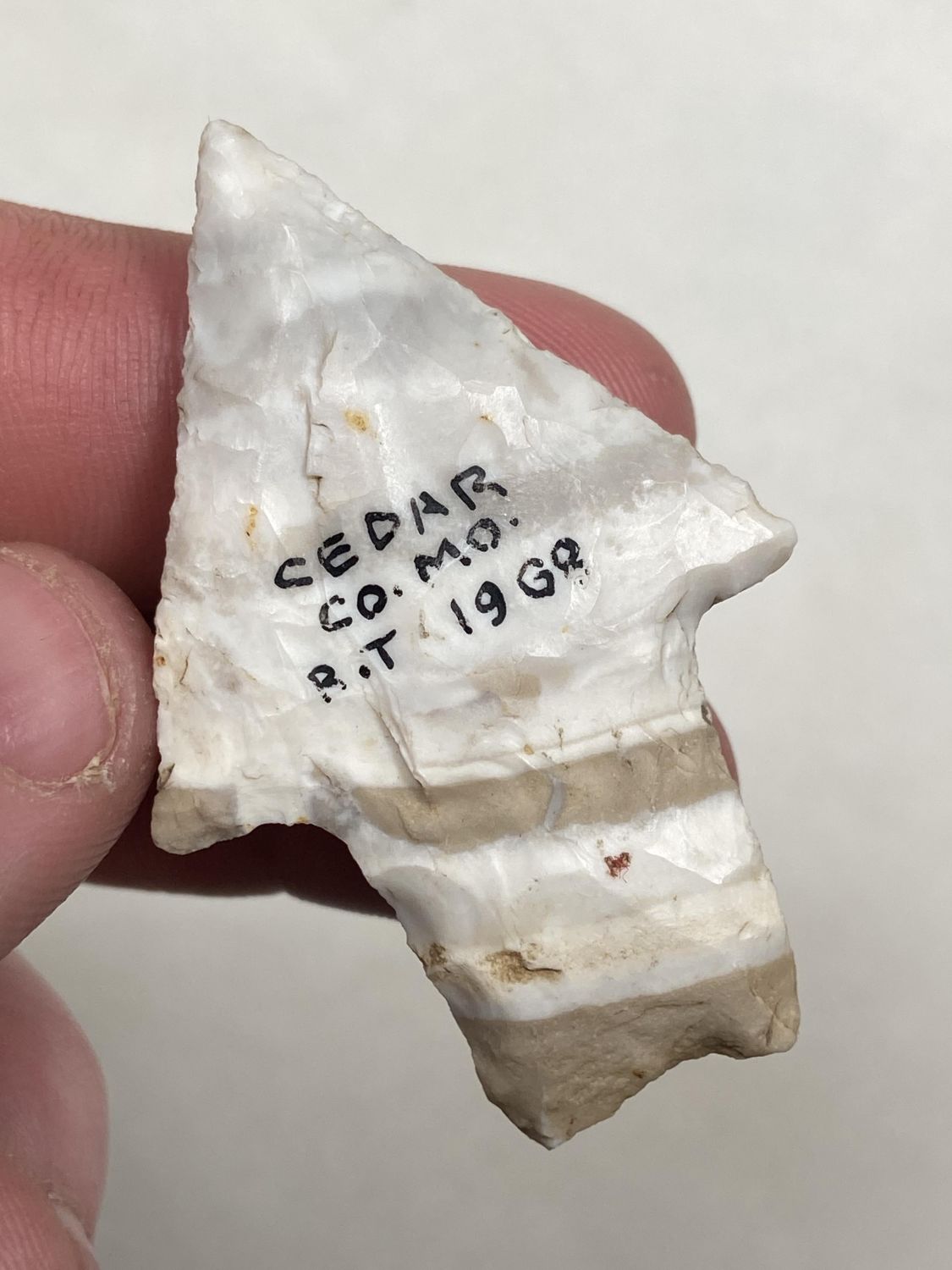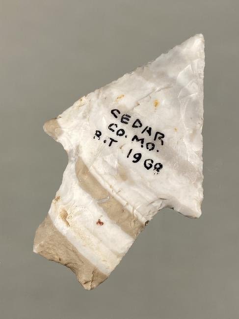 2" COLORFUL DICKSON FOUND IN CEDAR COUNTY MISSOURI IN 1931, GREAT COLOR, INDIAN ARROWHEAD ARTIFACT