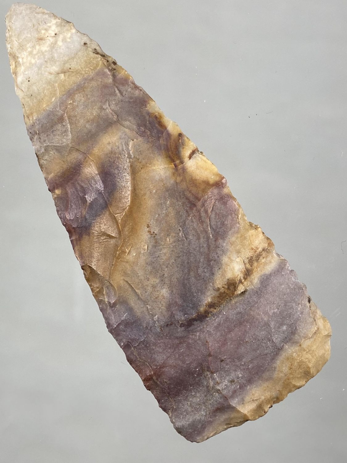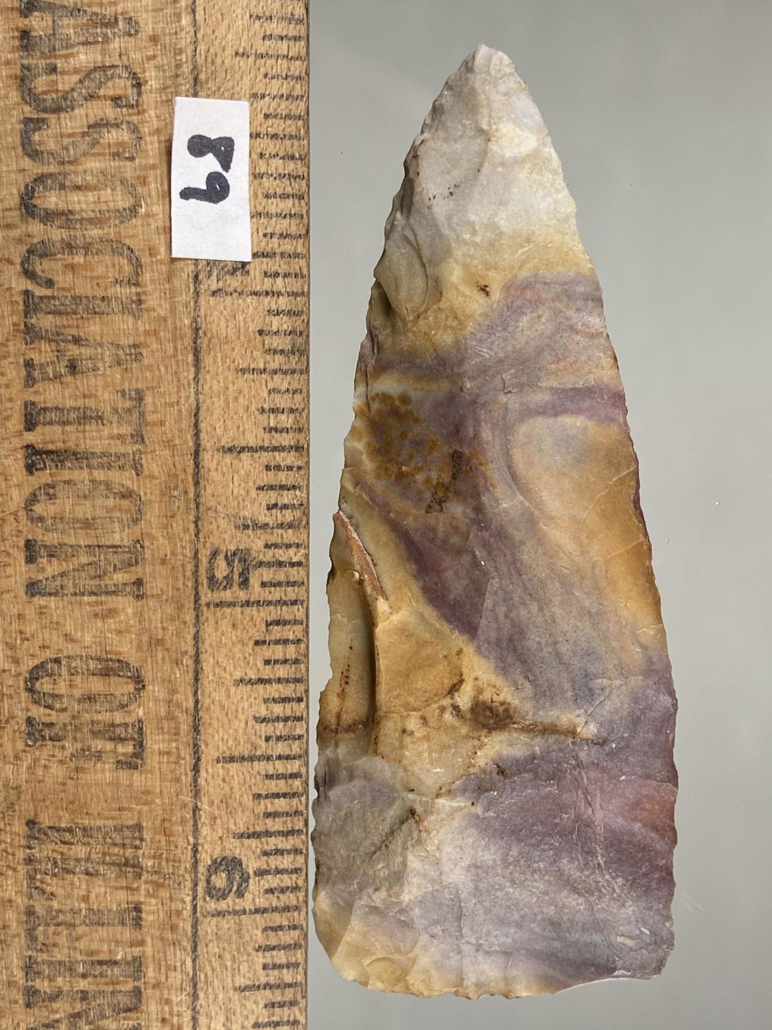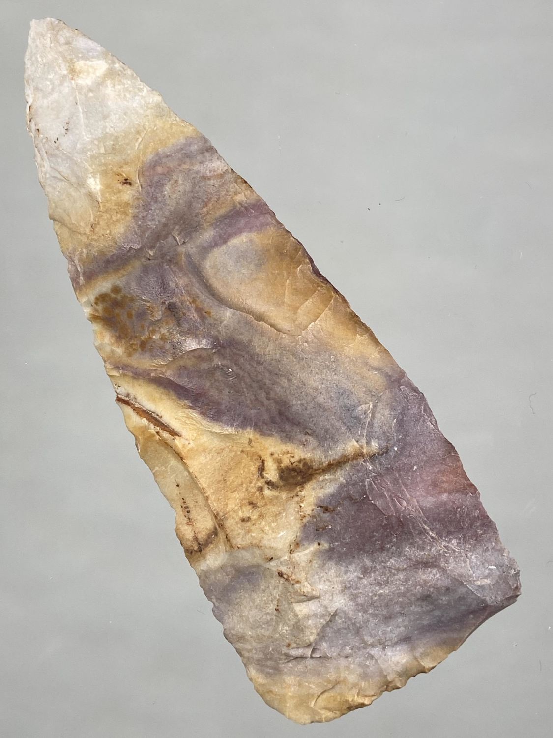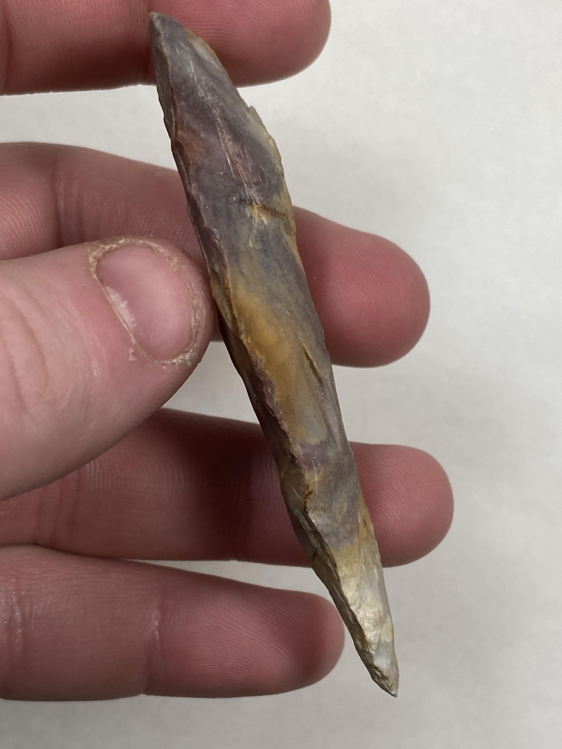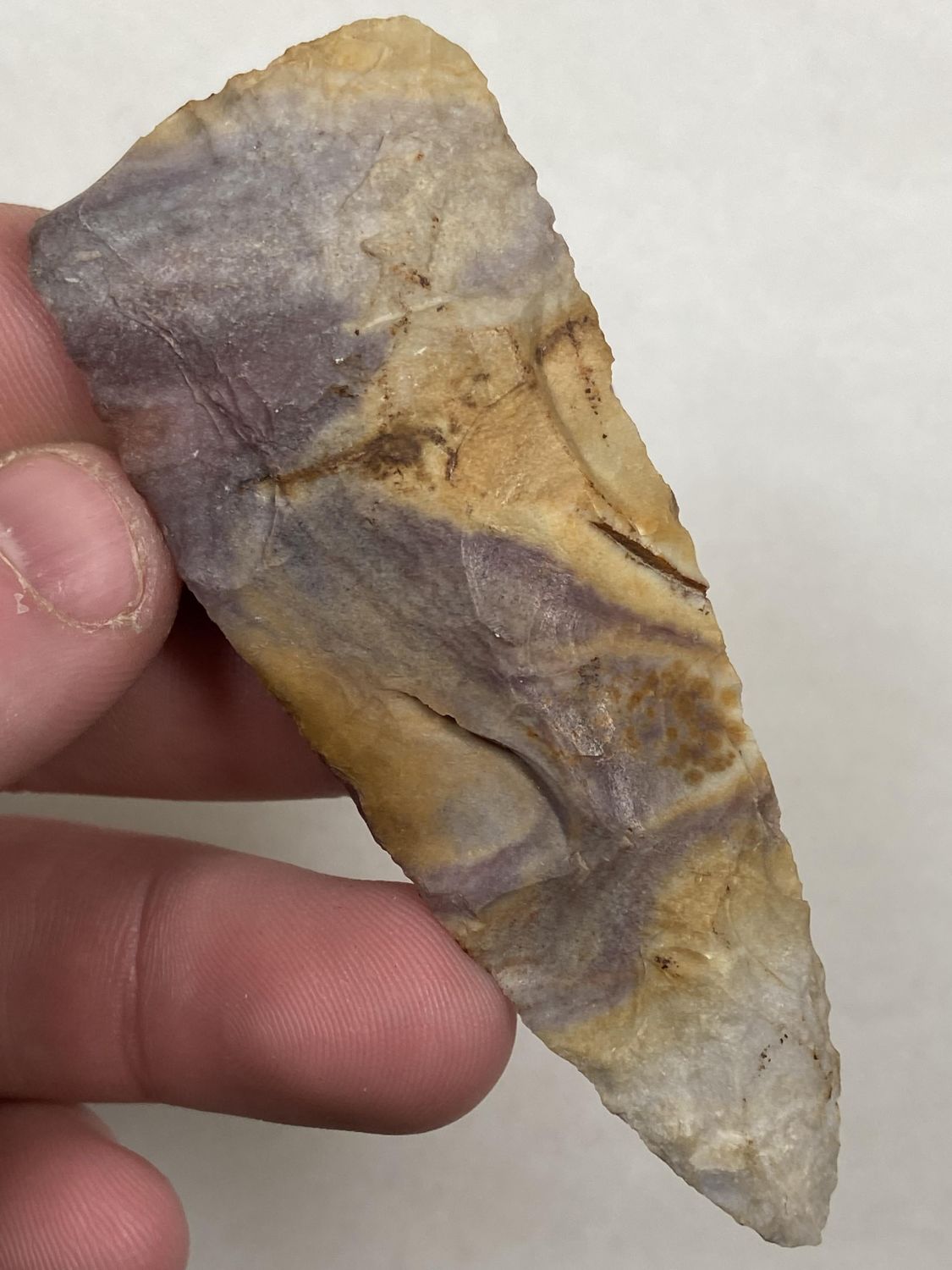 3 1/8" VERY COLORFUL HOPEWELL BLADE FOUND IN ADAMS COUNTY ILLINOIS, GREAT COLOR, INDIAN ARROWHEAD ARTIFACT