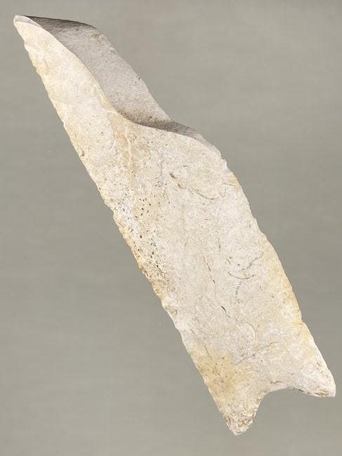 5 5/16" LONG HEARTBREAKER SLOAN DALTON, INCREDIBLE FLAKING, WOULD HAVE BEEN AT LEAST 8" LONG, PIKE CO ILLINOIS