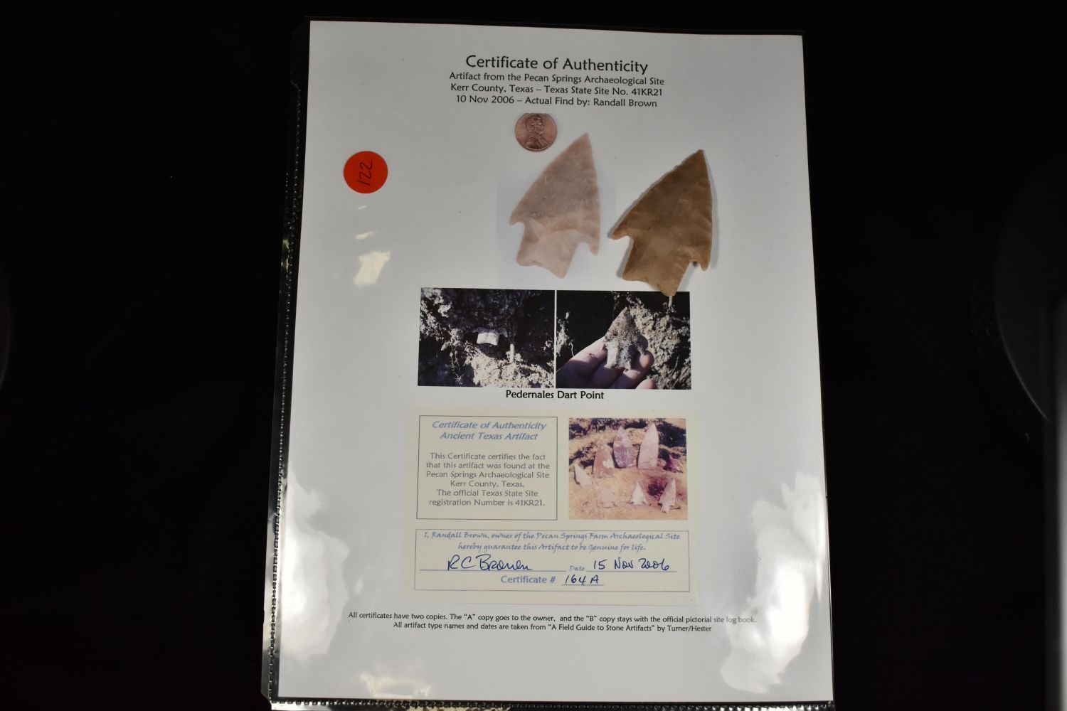 2 5/8" Perdenales Dart Point, COA Randall Brown, TX, Native American Artifacts