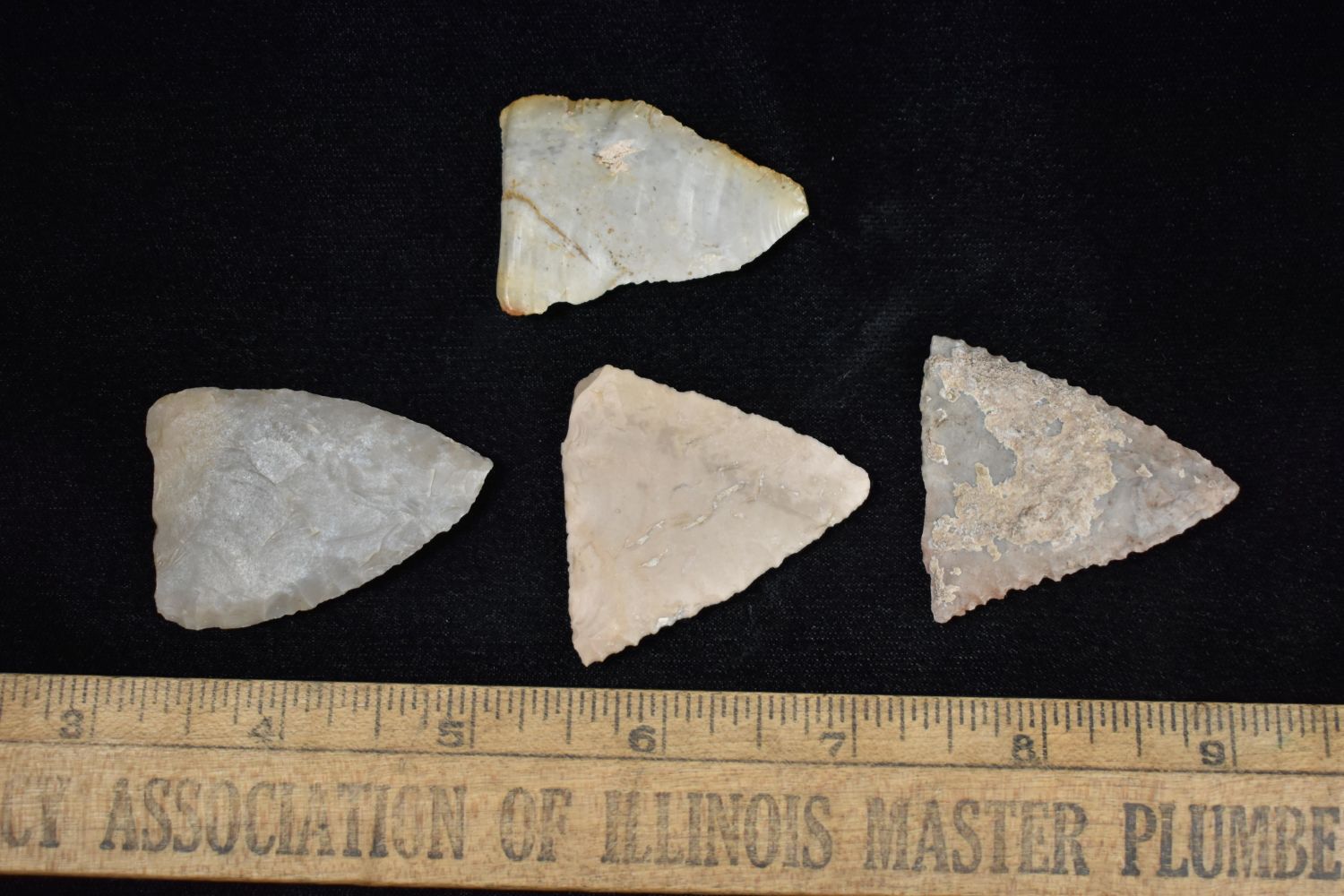 Lot of 4 Triangle Blades, TX< Native American Artifacts