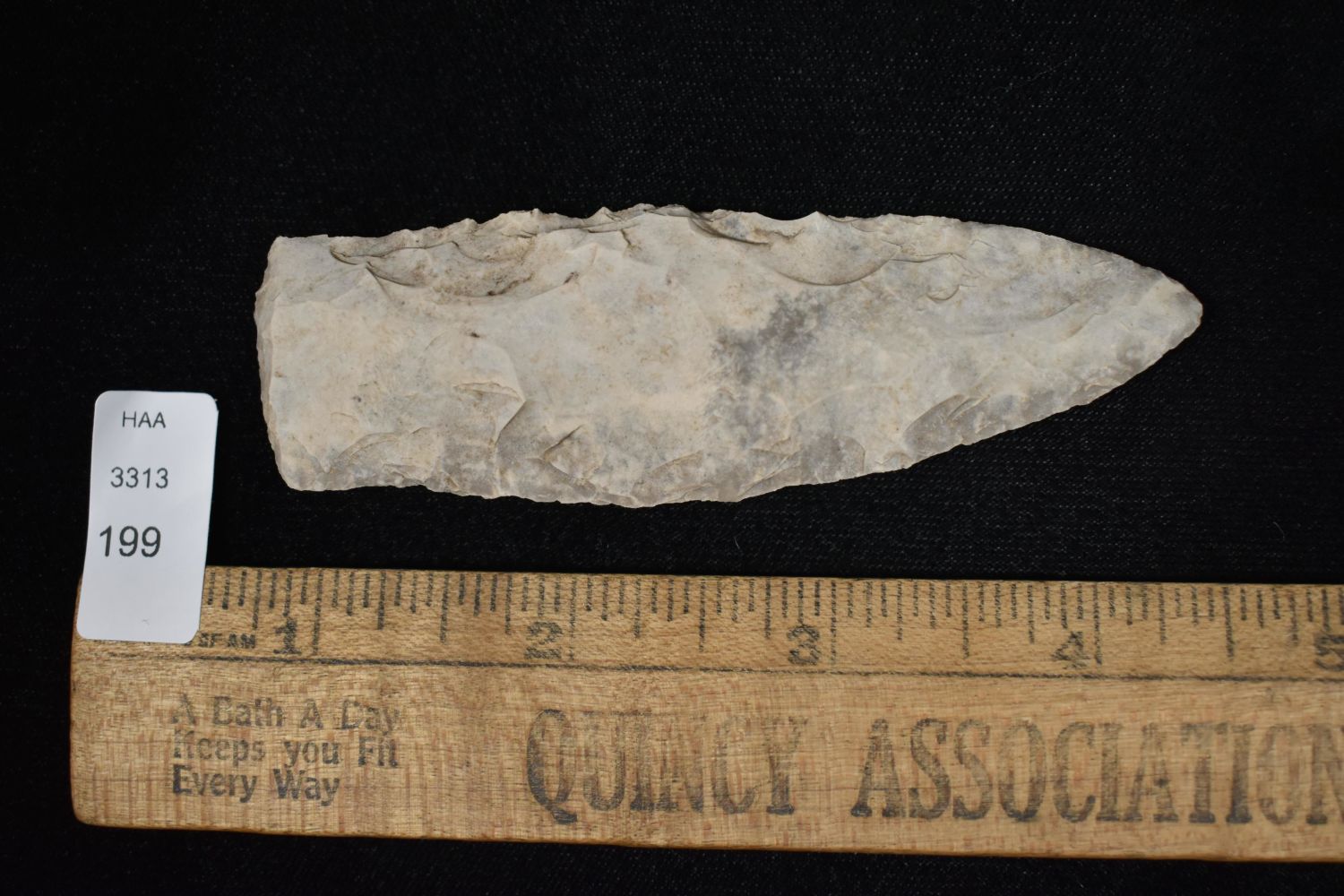 3 5/8" Stemmed Paleo Dart, COA Randall Brown, TX< Native American Artifacts
