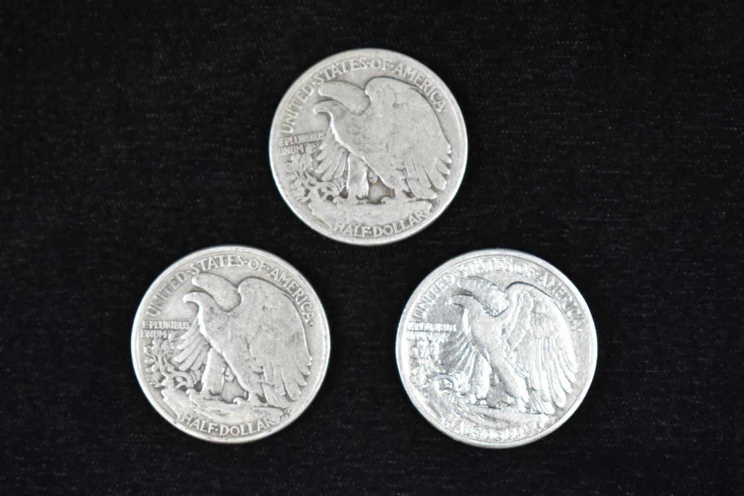 Lot of 3 Silver Walking Liberty Half Dollars, 1942,