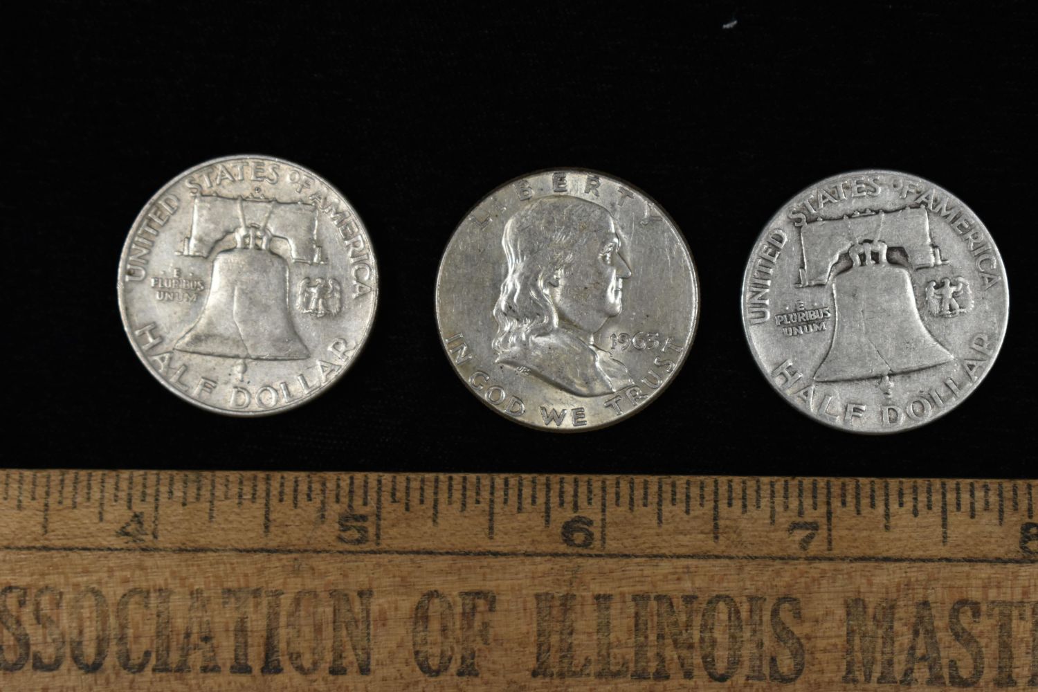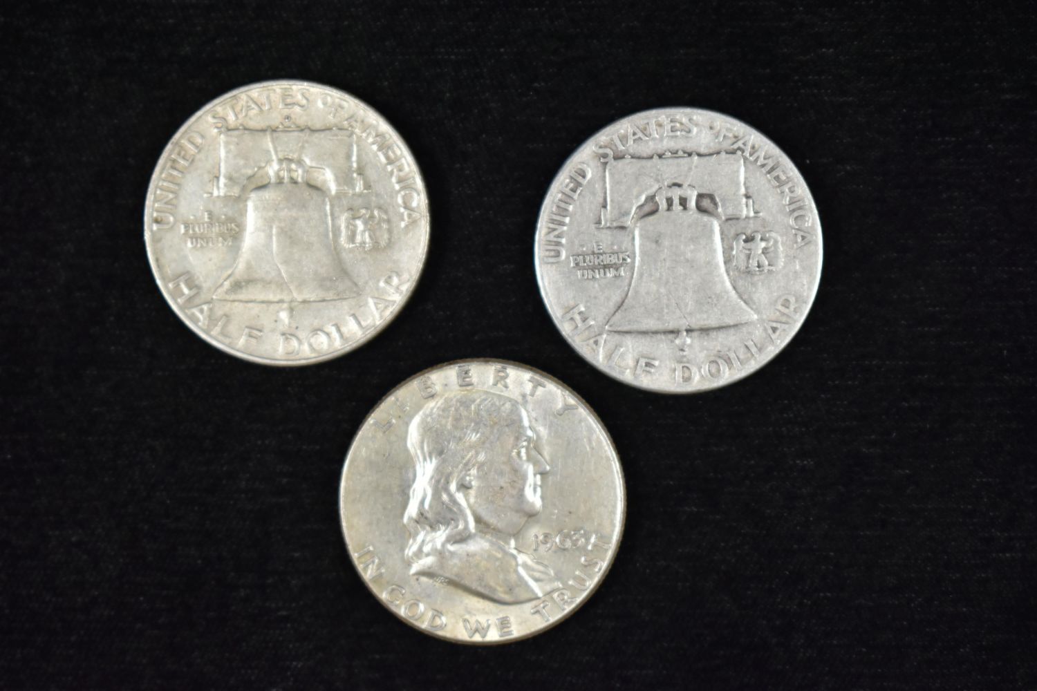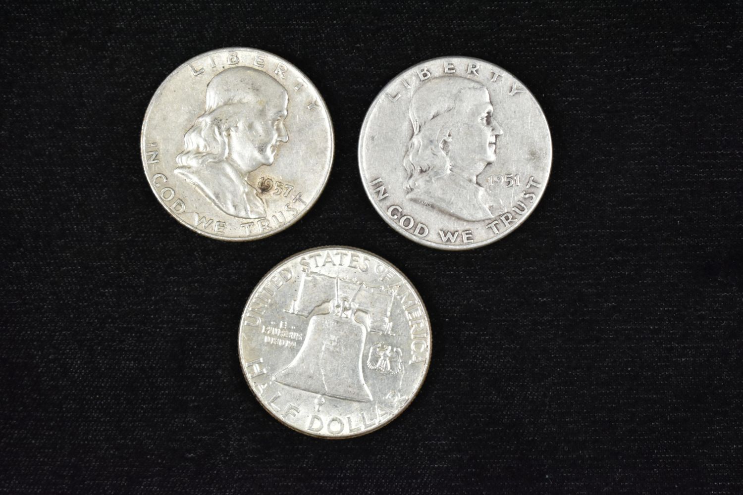 Lot of 3 Franklin Silver Half Dollars, 1951-1963