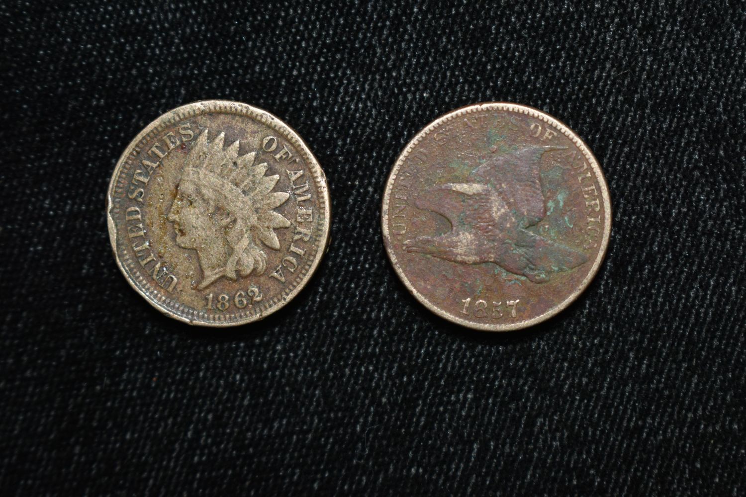 1862 Civil War Era Indian Cent and 1857 Flying Eagle Cent, Early US Penny