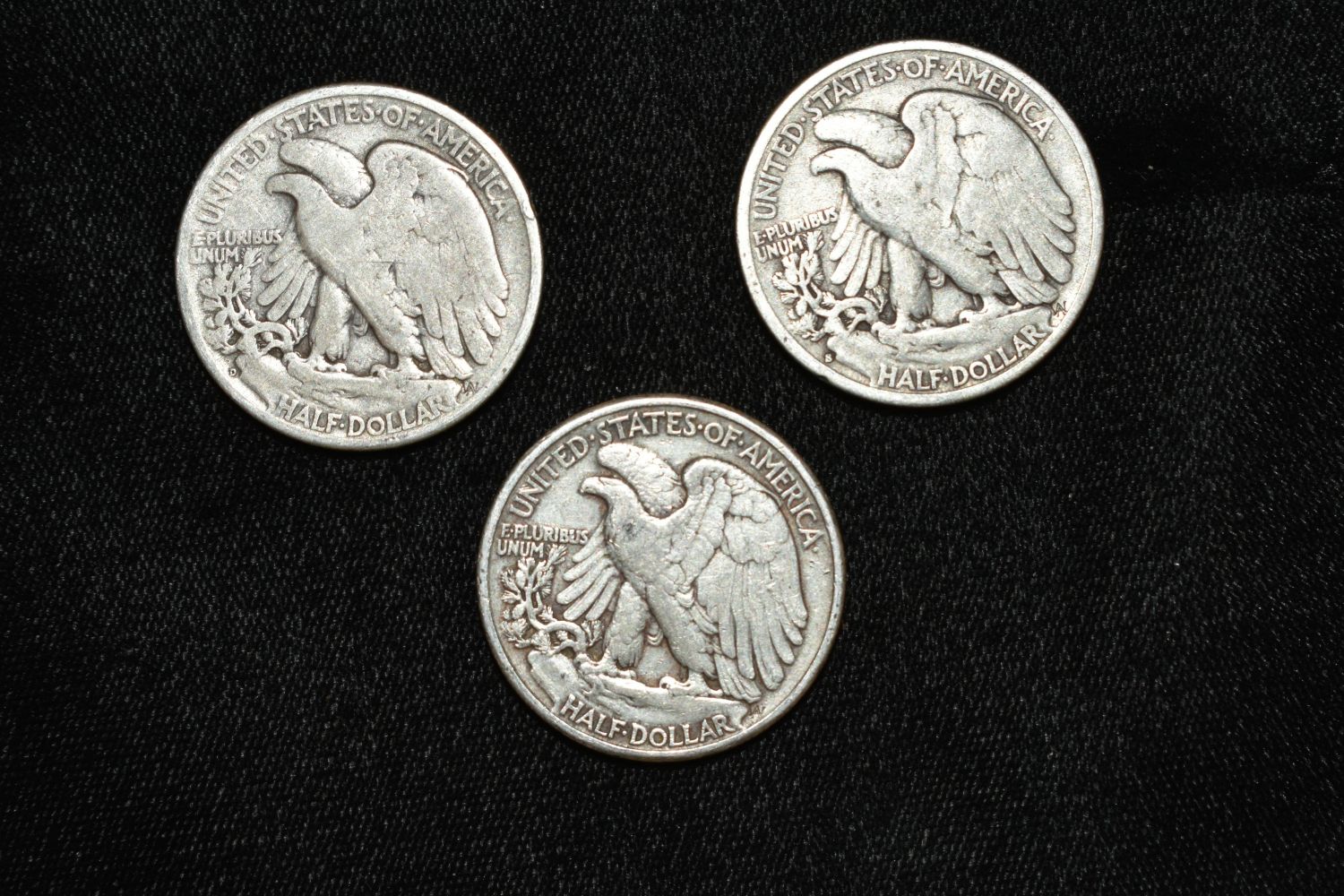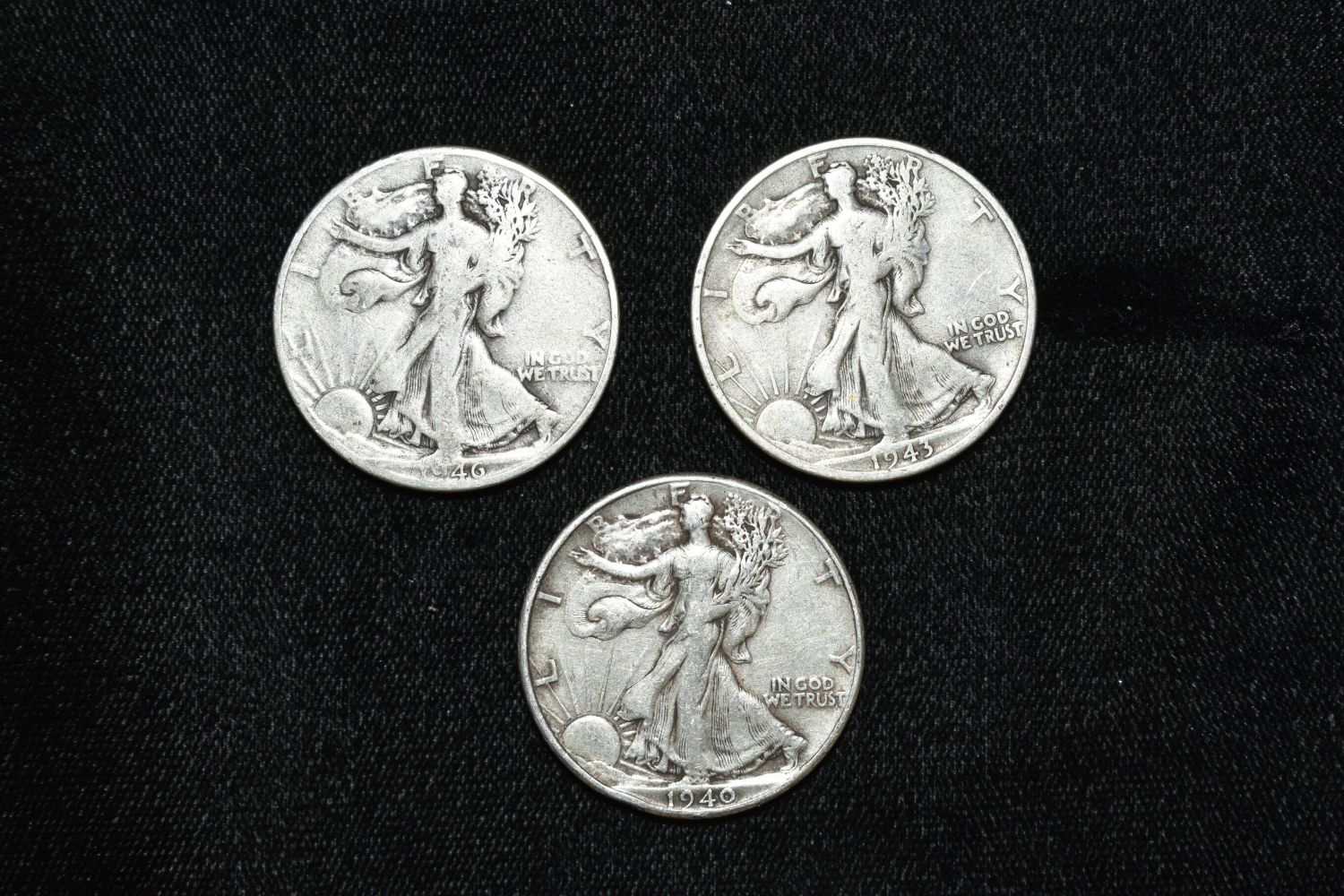 Lot of 3 Silver Walking Liberty Half Dollars, 1940s