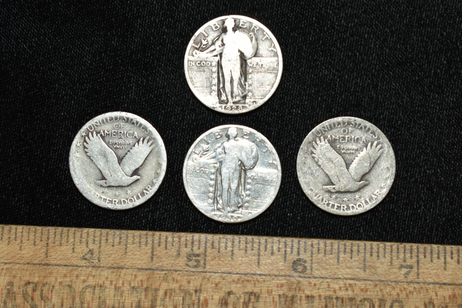 Lot of 4 Standing Liberty Quarters, 1927-1930, Early US Coins