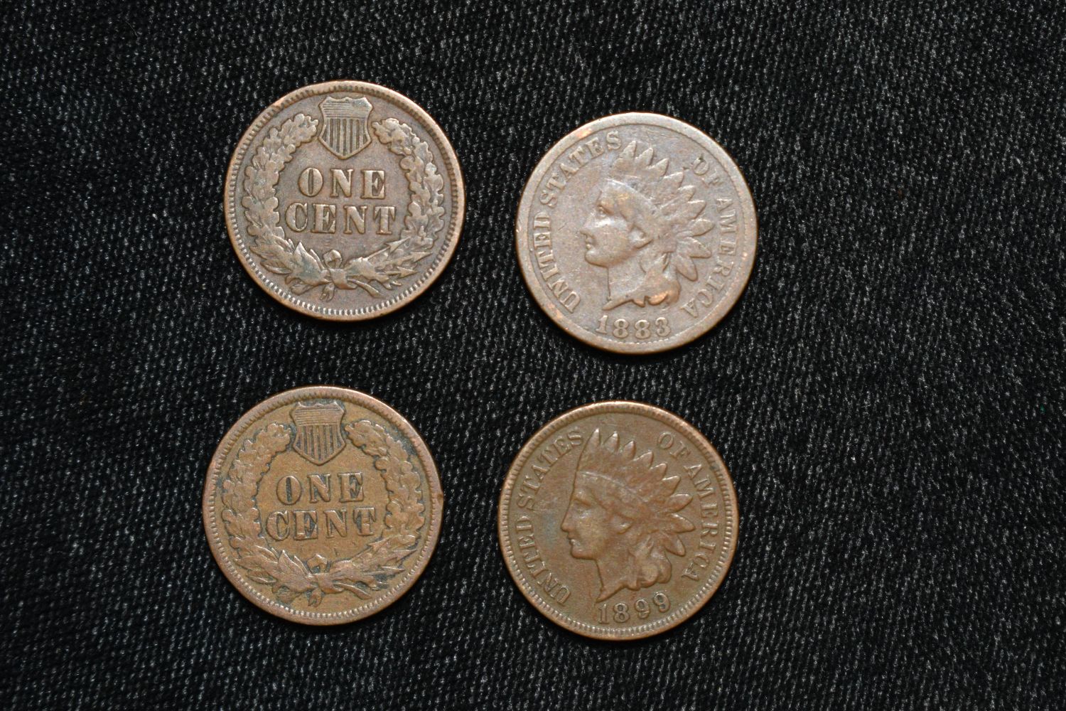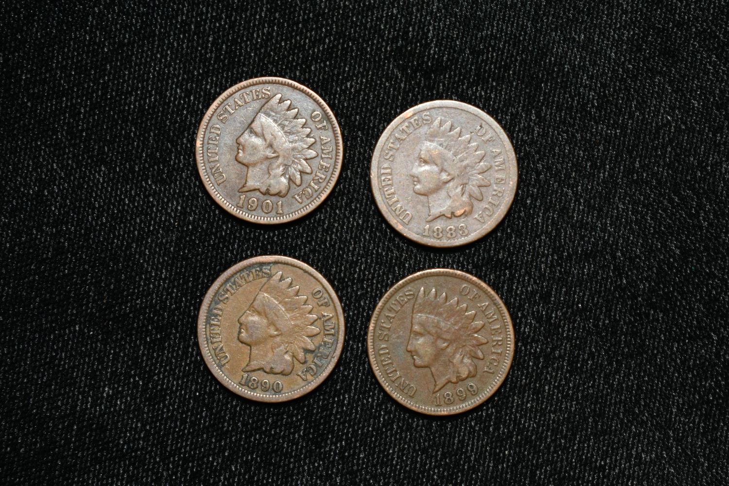 Lot of 4 Nicer Indian Head Penny, 1883-1901, One Cent, Some with Full Liberty