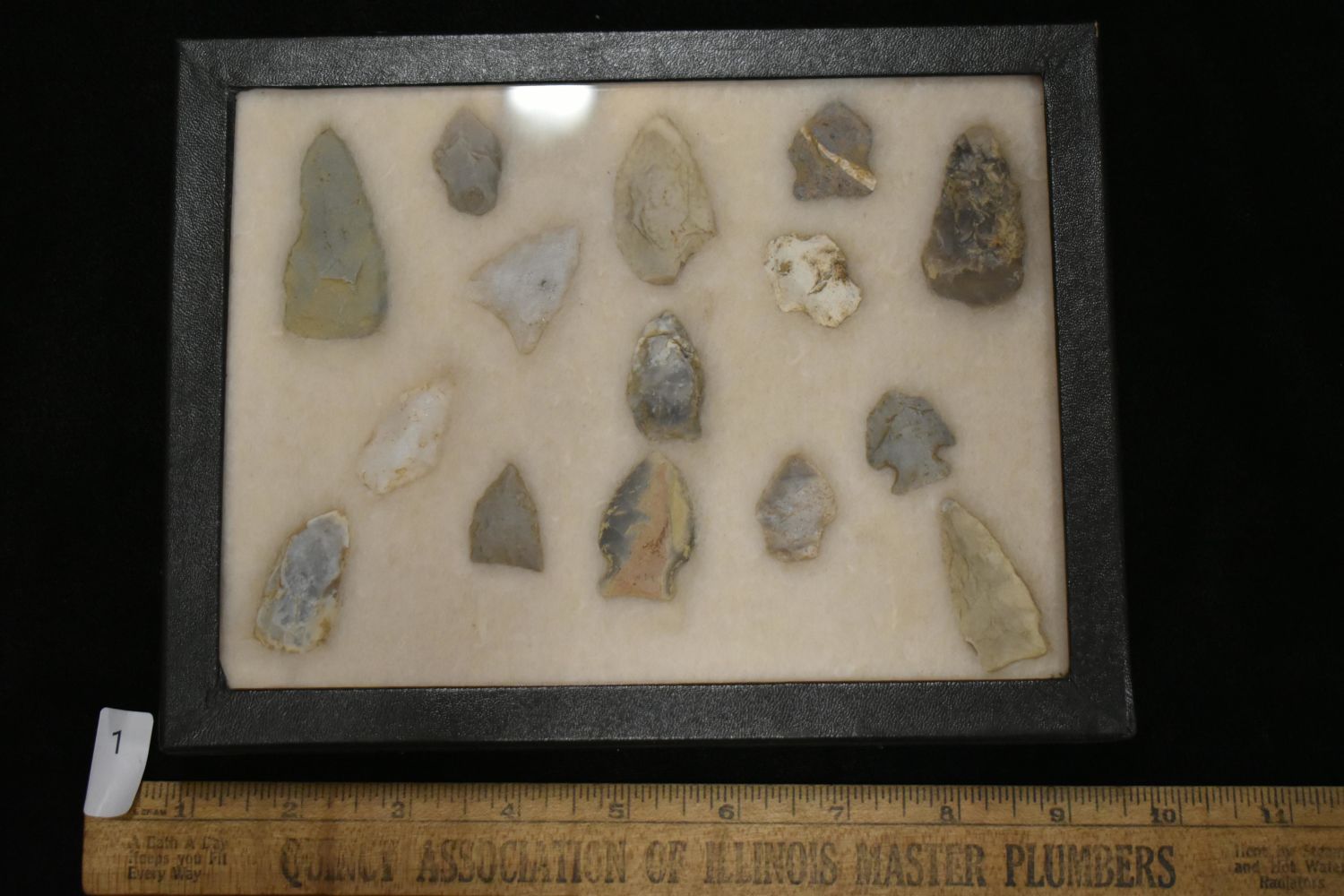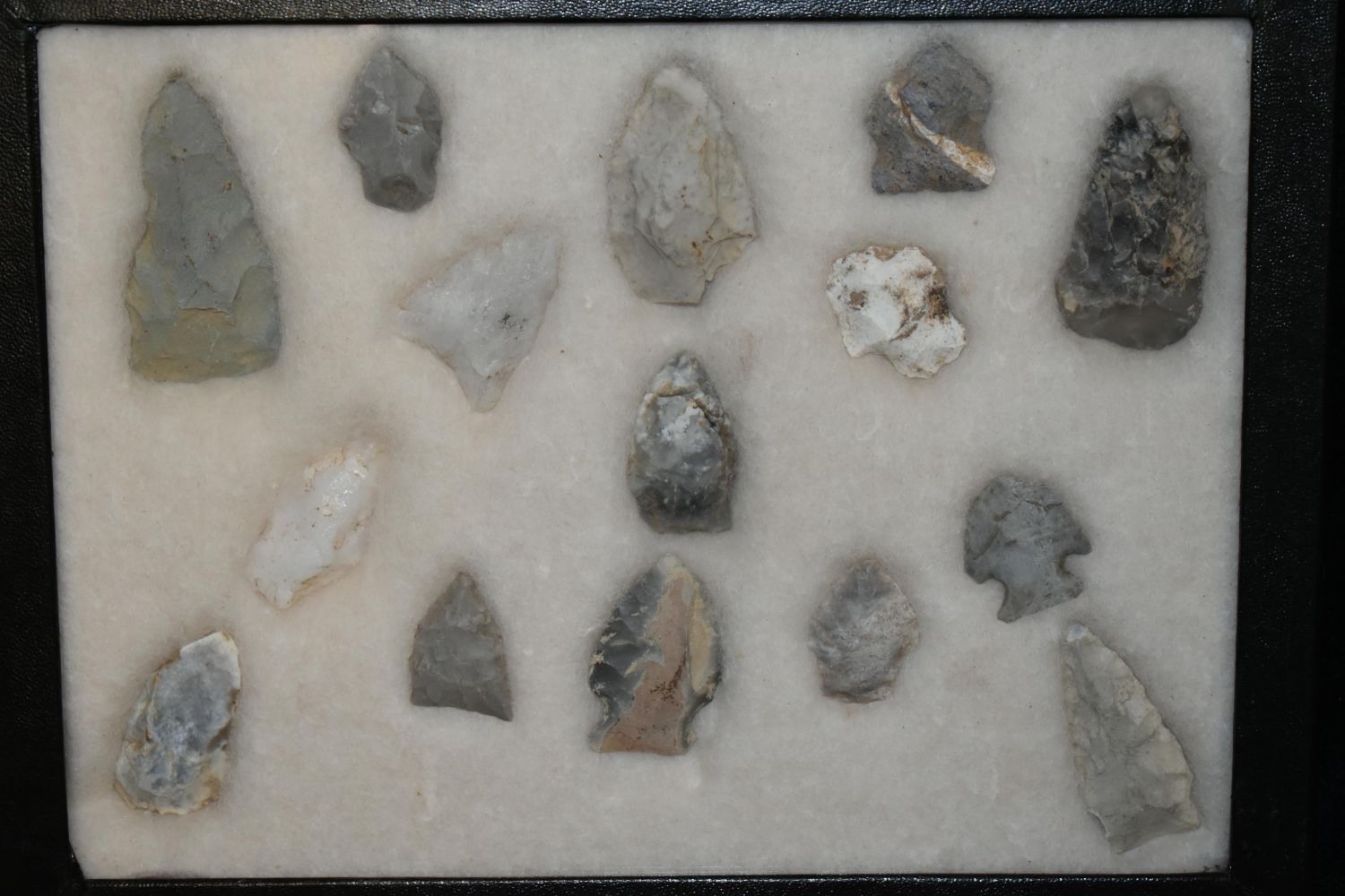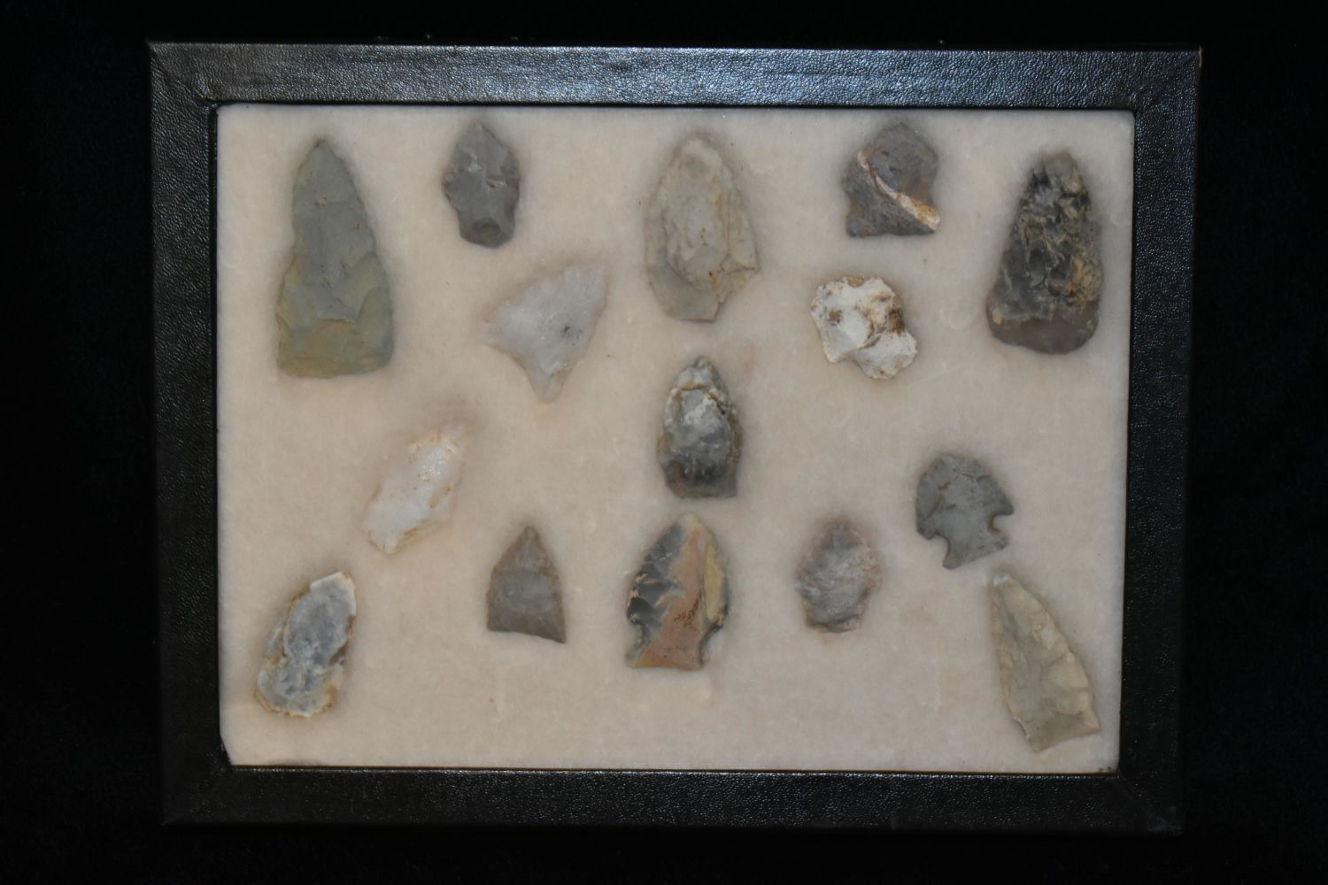 8 5/8x 6 5/8" Frame of 15 Archaic and Woodland Points, East Coast, Native American Artifacts