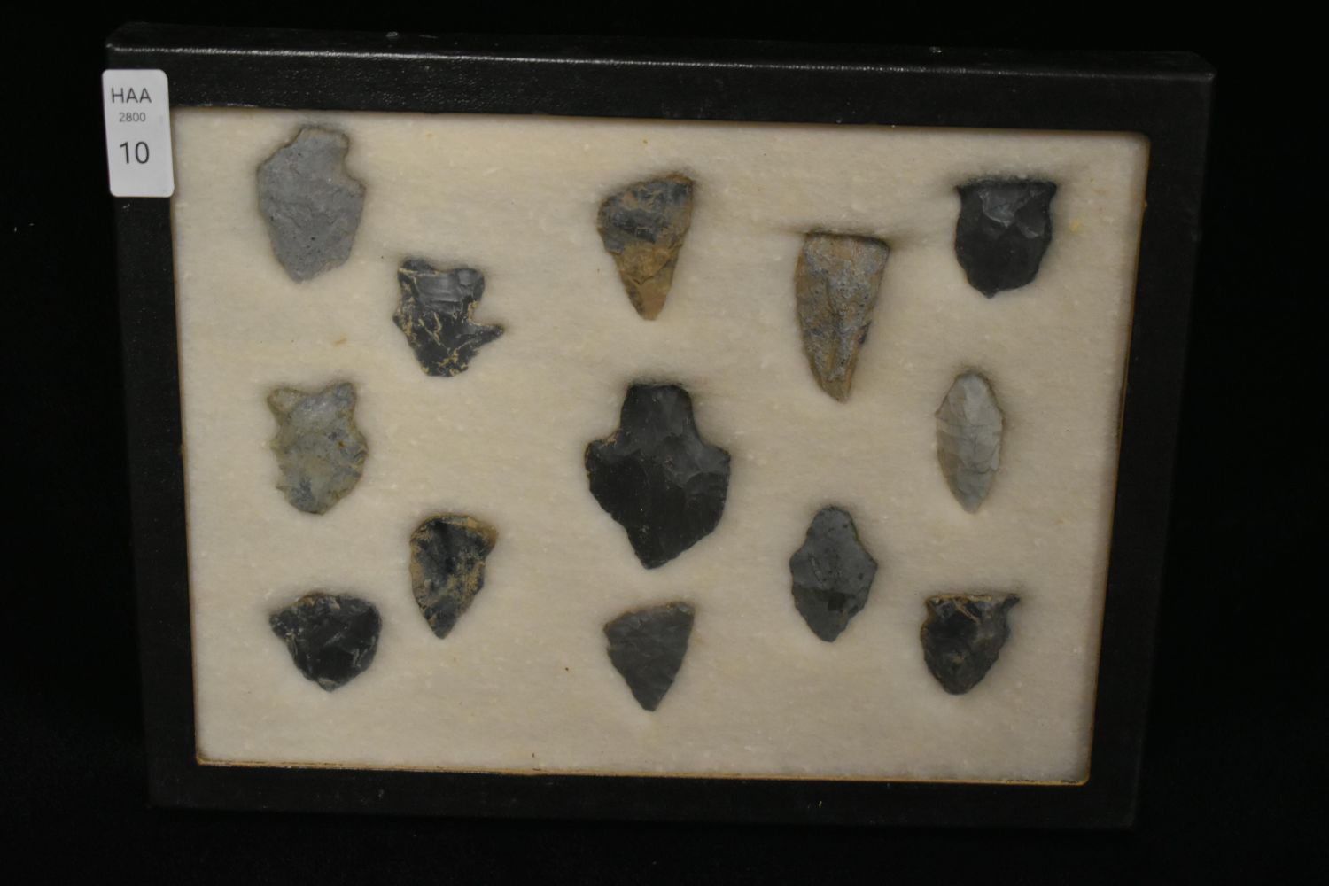 17 5/8x 6 5/8" Frame of 13 Archaic and Woodland Points,