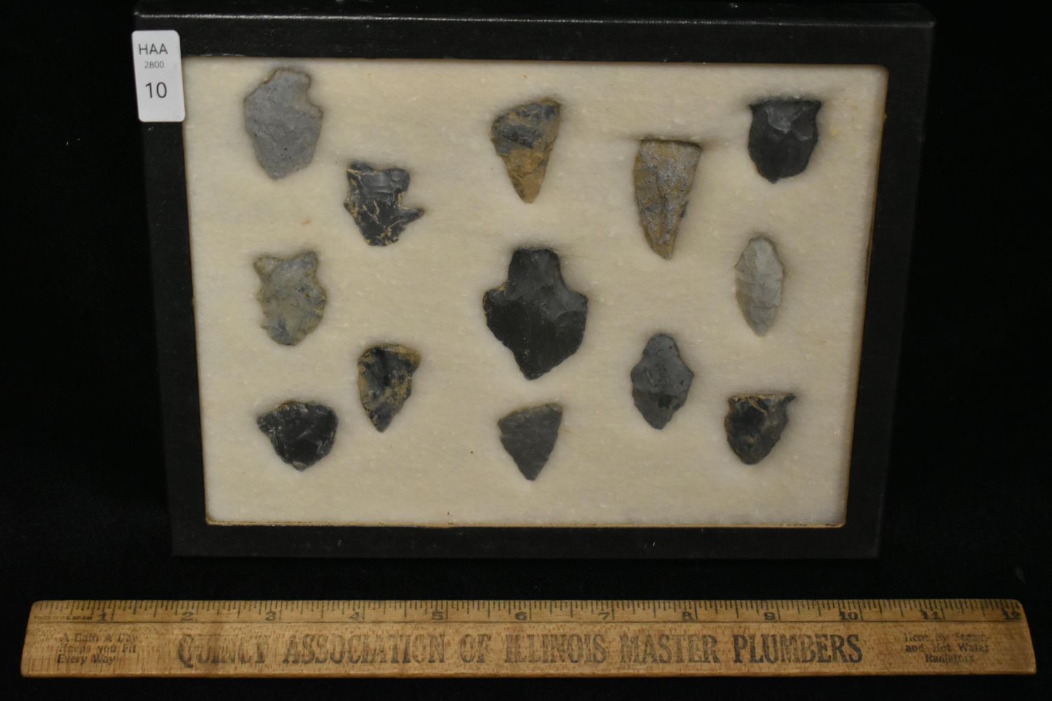 17 5/8x 6 5/8" Frame of 13 Archaic and Woodland Points, East Coast, Native American Artifacts