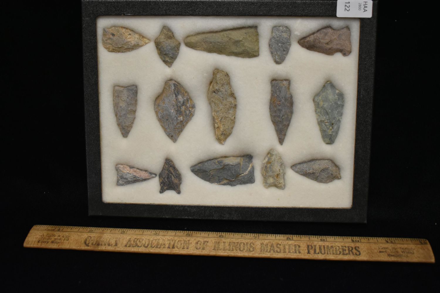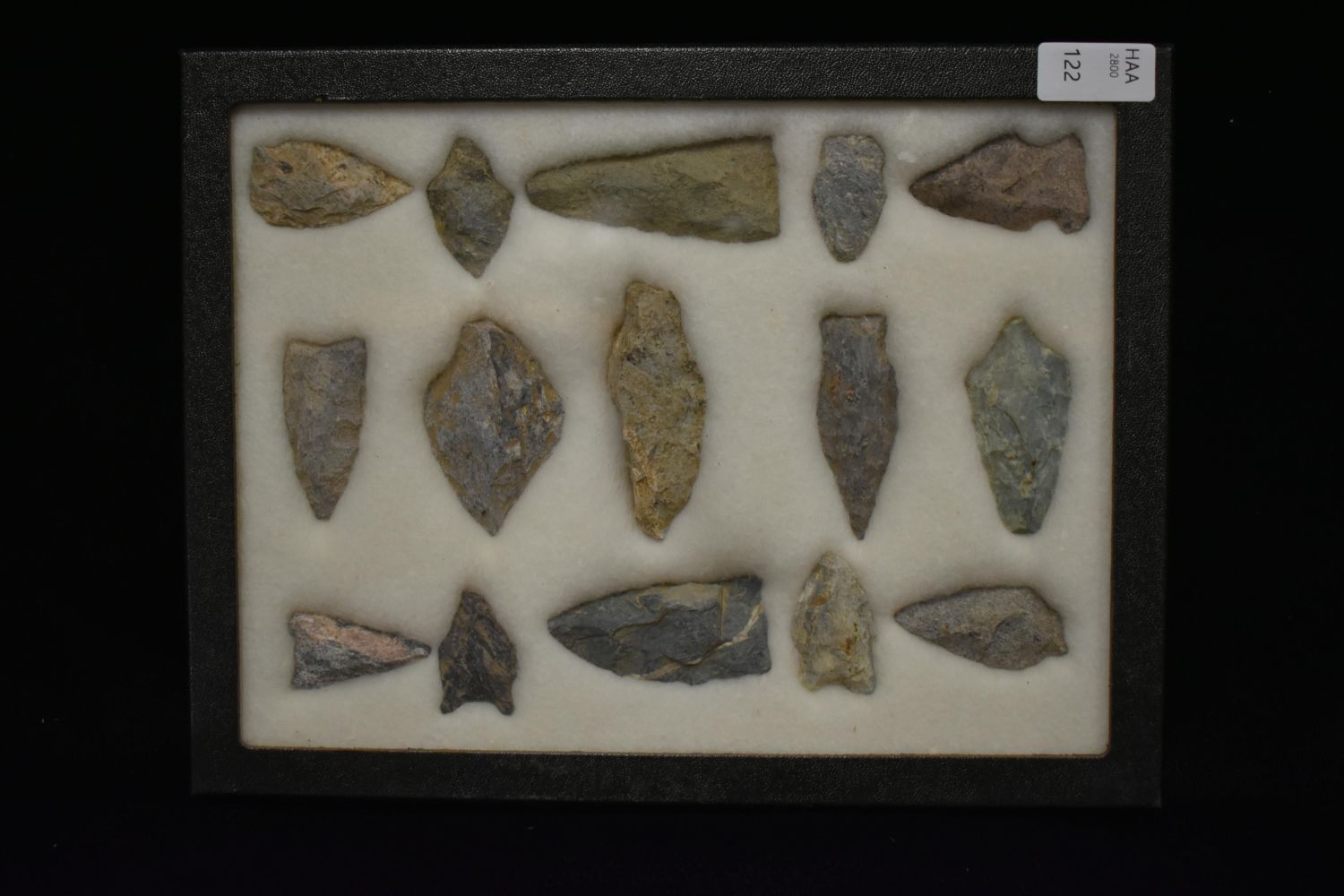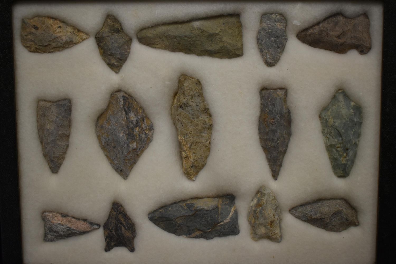 8 5/8x 6 5/8" Frame of 15 Archaic and Woodland Points, East Coast, Native American Artifacts