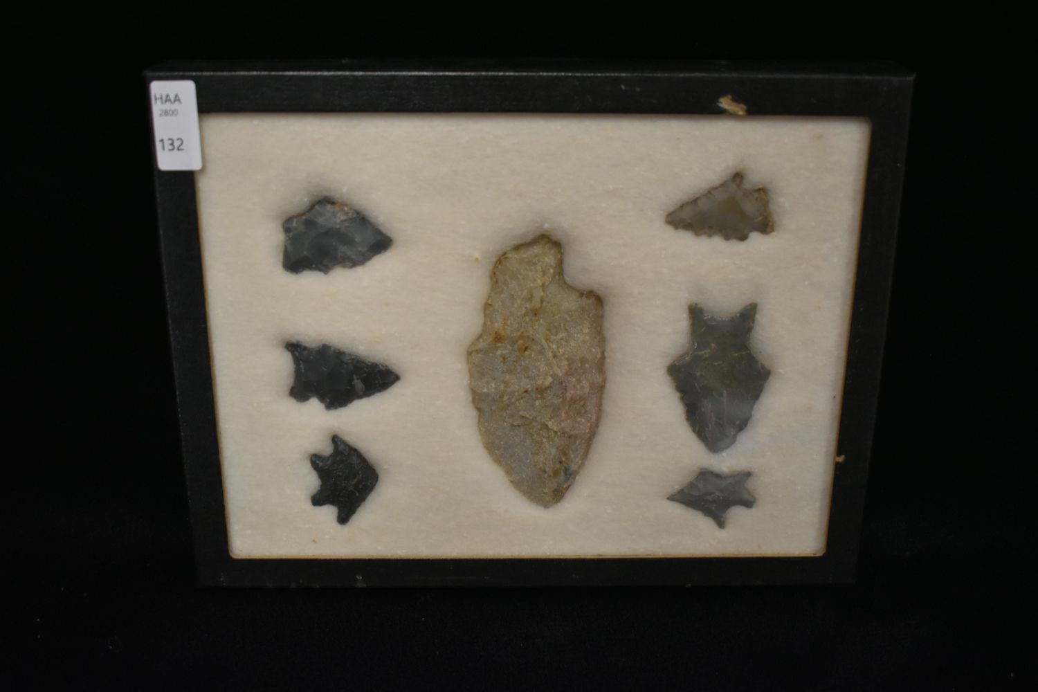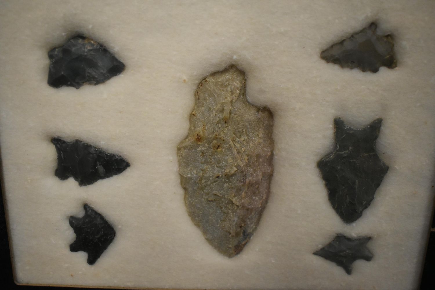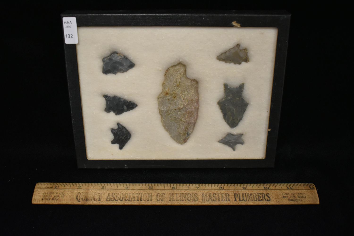 8 5/8x 6 5/8" Frame of 7 Archaic and Woodland Points, East Coast, Native American Artifacts