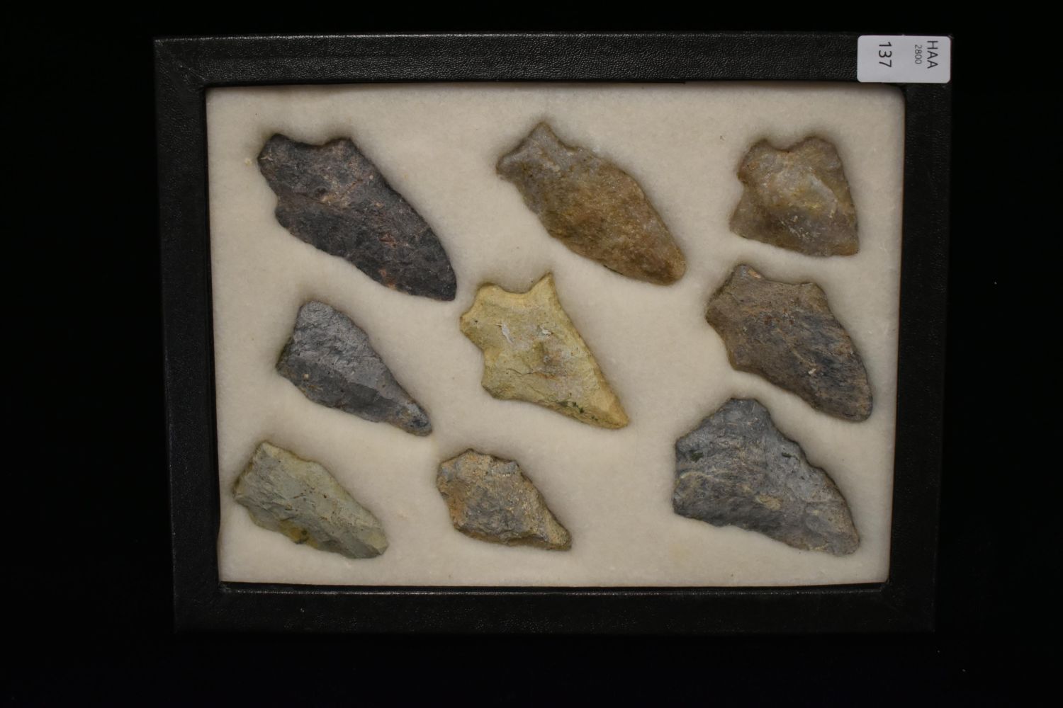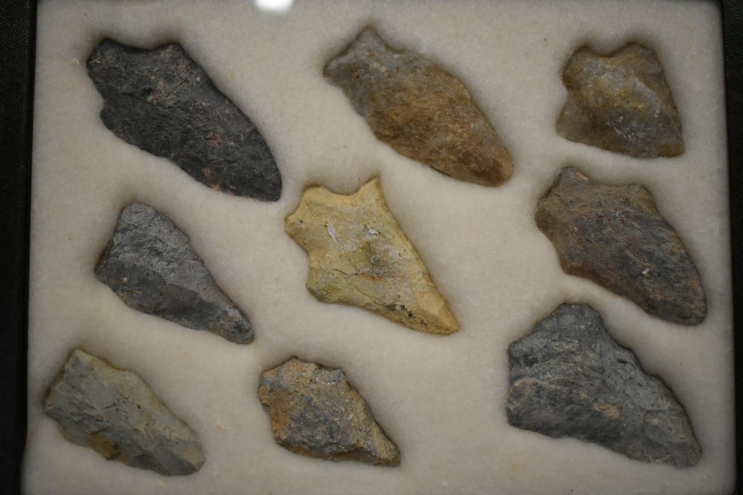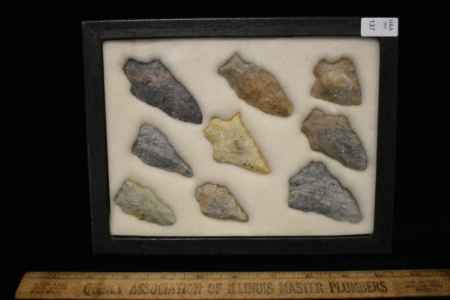 8 5/8x 6 5/8" Frame of 9 Archaic and Woodland Points, East Coast, Native American Artifacts