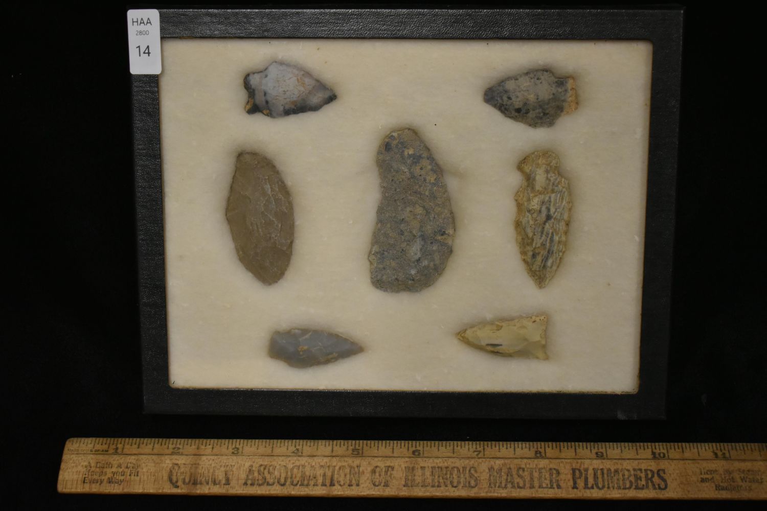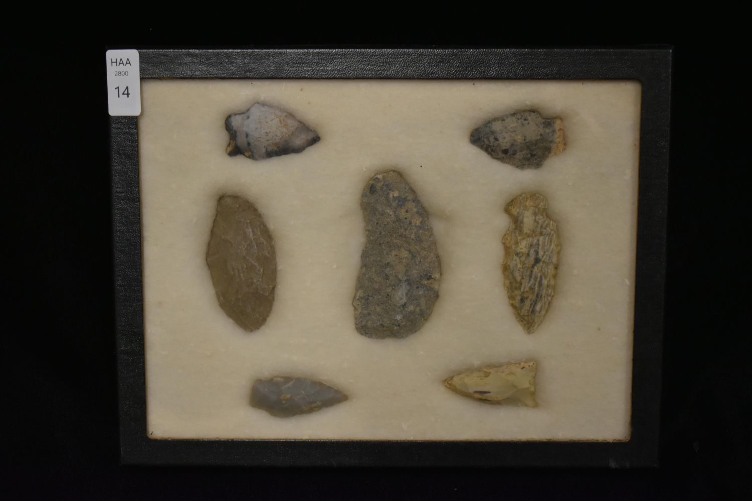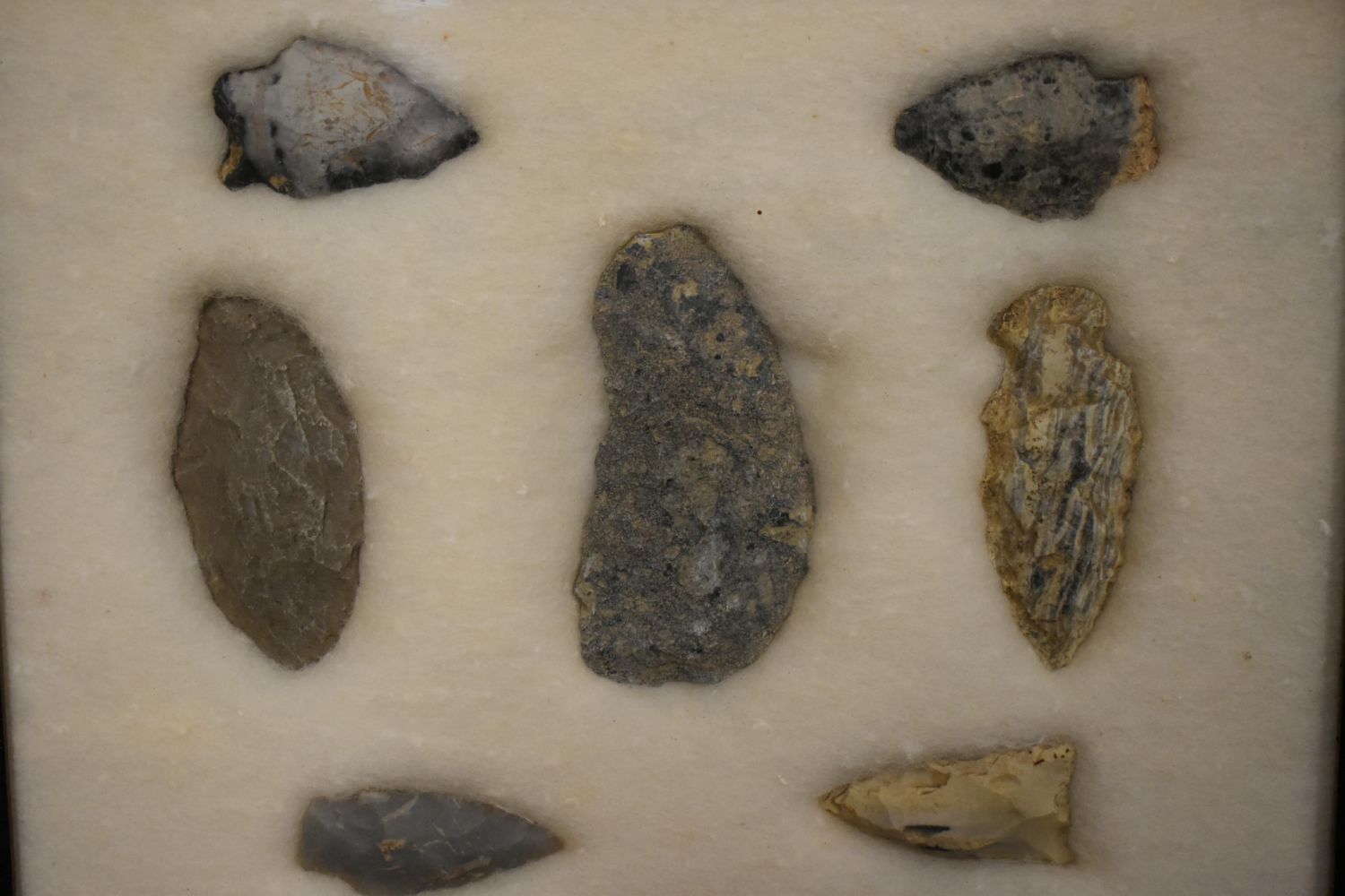 21 5/8x 6 5/8" Frame of 7 Archaic and Woodland Points, East Coast, Native American Artifacts