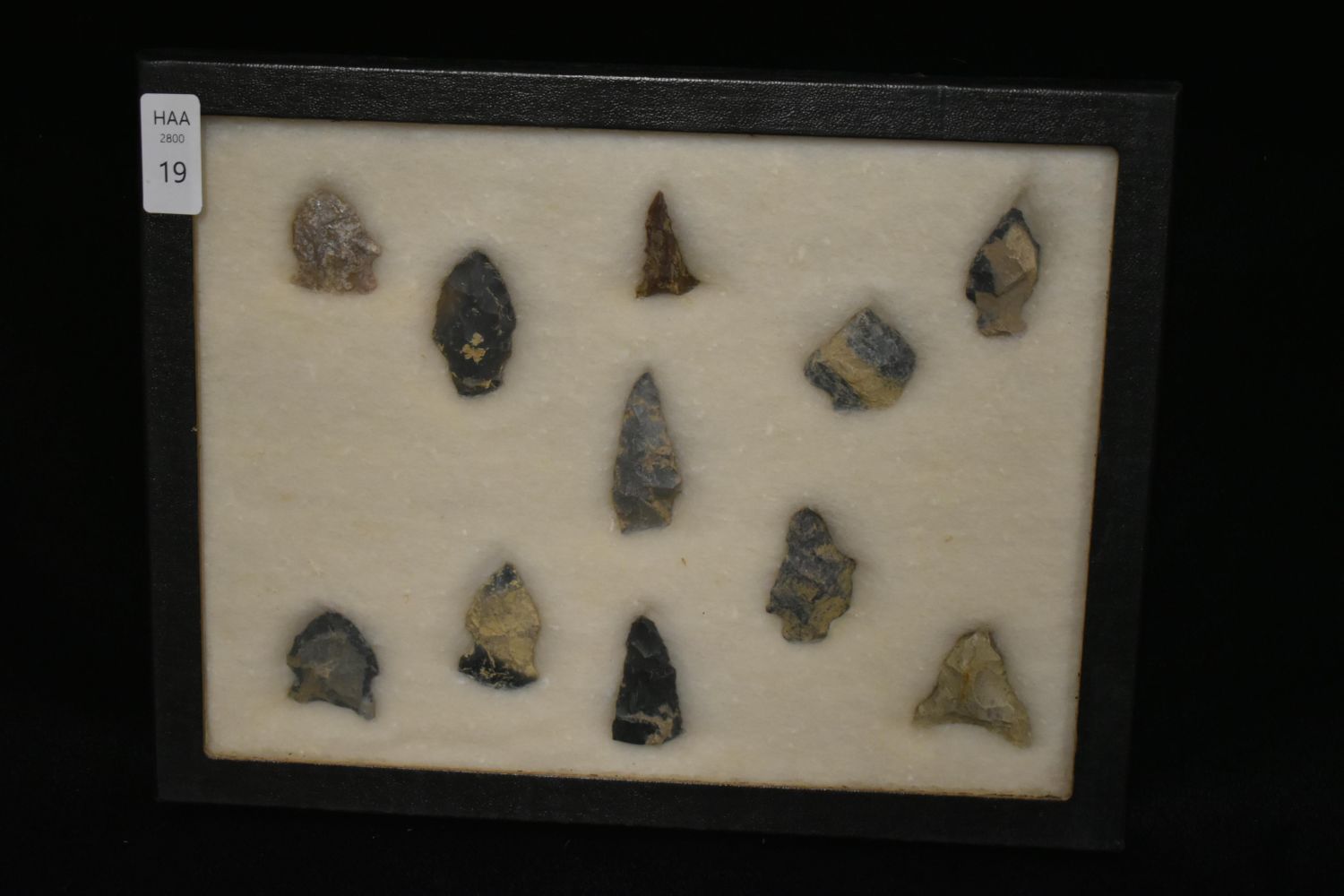 26 5/8x 6 5/8" Frame of 11 Archaic and Woodland Points, East Coast, Native American Artifacts