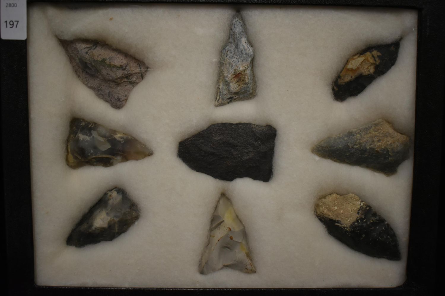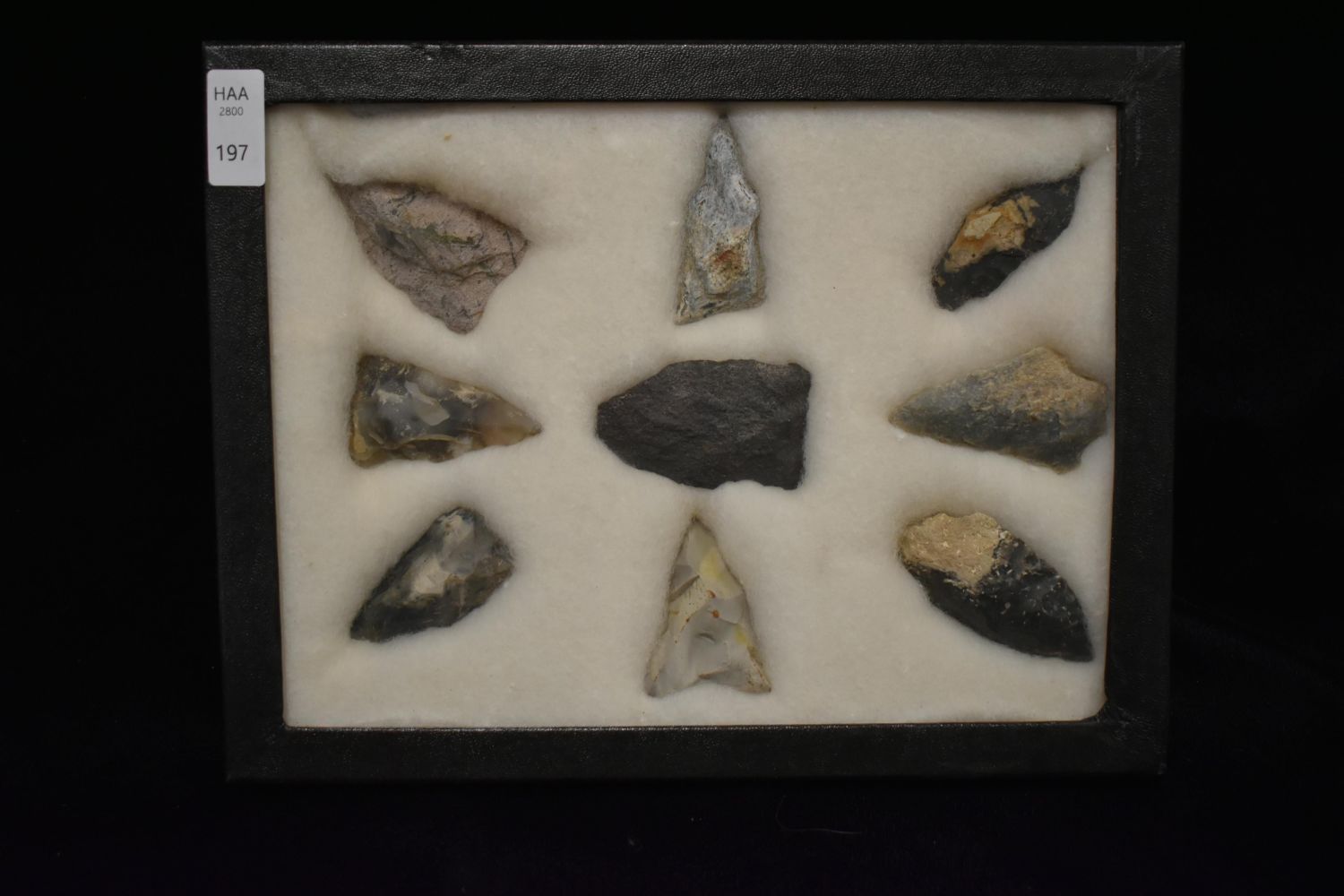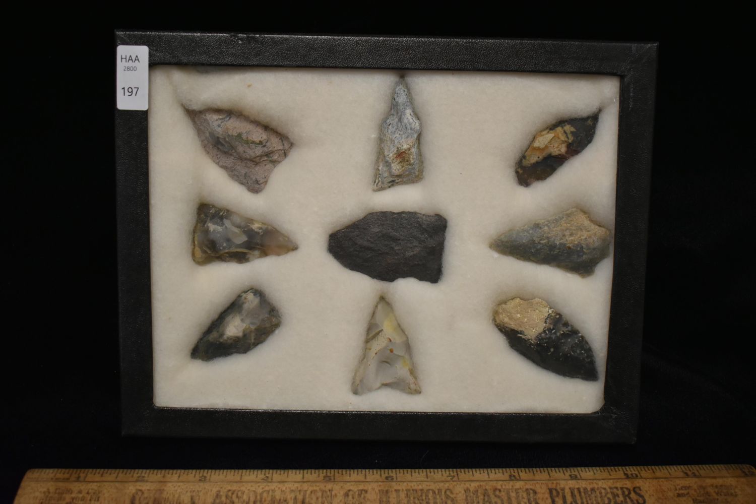 8 5/8x 6 5/8" Frame of 9 Archaic and Woodland Points, East Coast, Native American Artifacts