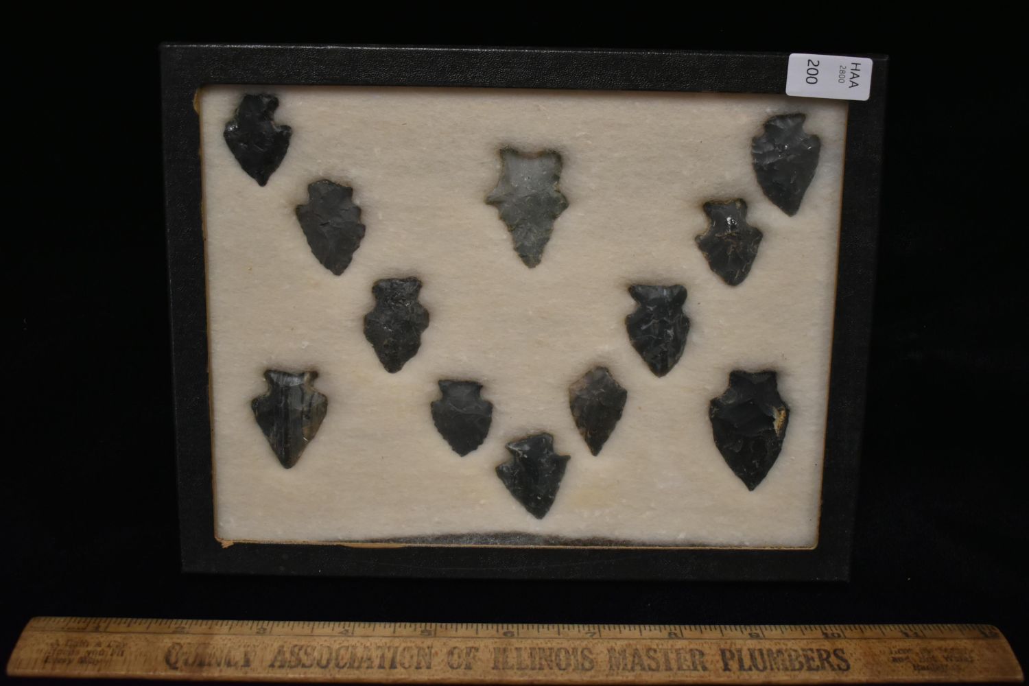 8 5/8x 6 5/8" Frame of 11 Archaic and Woodland Points, East Coast, Native American Artifacts
