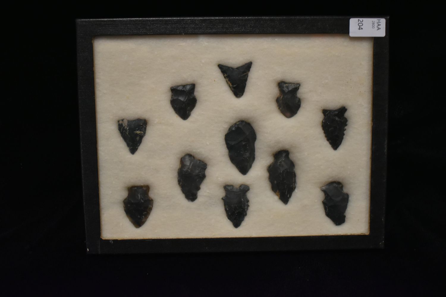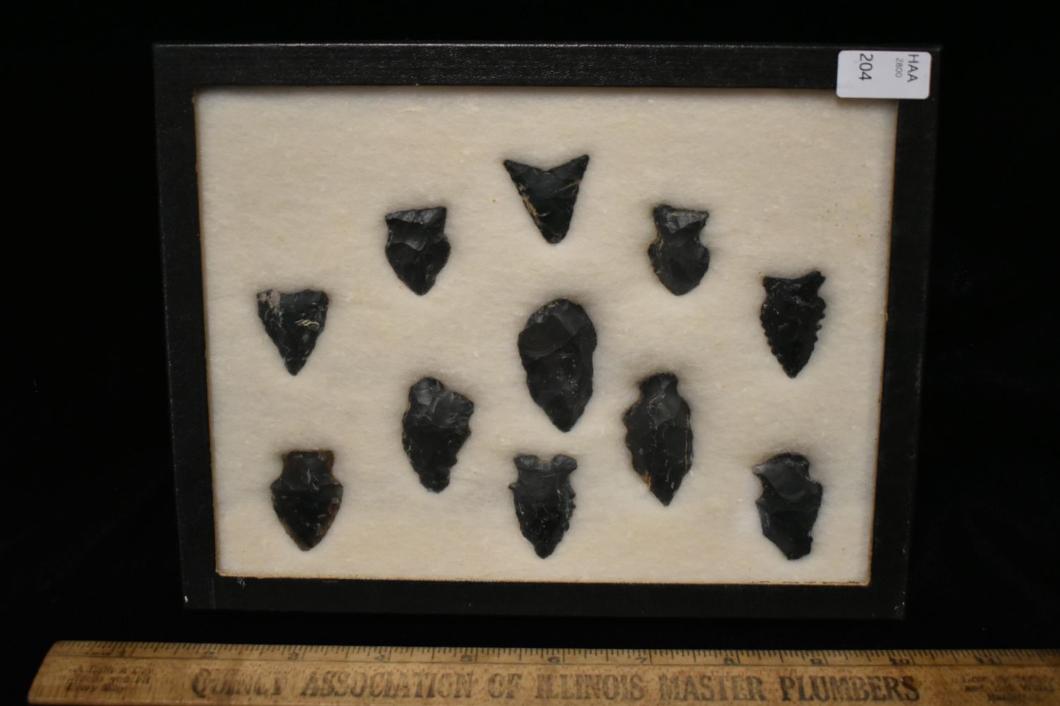 8 5/8x 6 5/8" Frame of 11 Archaic and Woodland Points, East Coast, Native American Artifacts