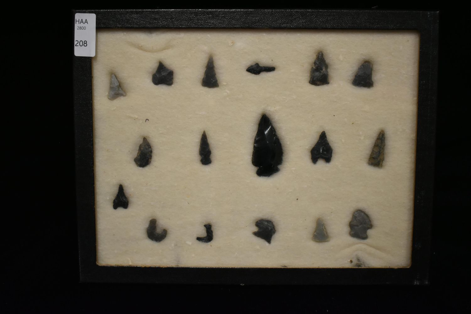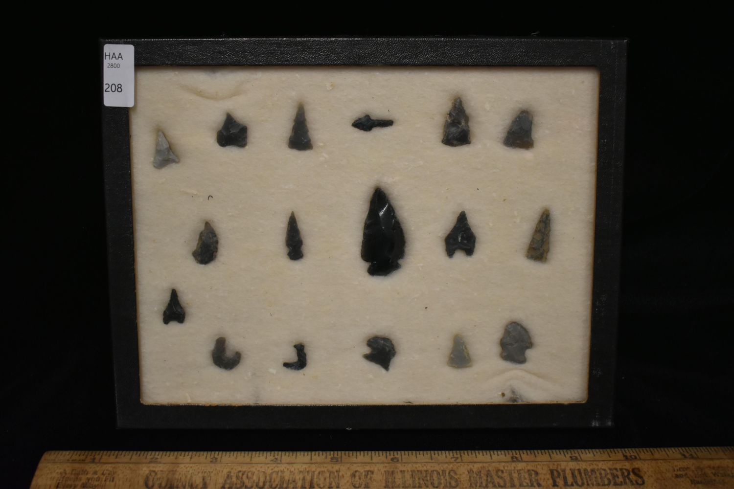 8 5/8x 6 5/8" Frame of 15 Bird Points, East Coast, Native American Artifacts