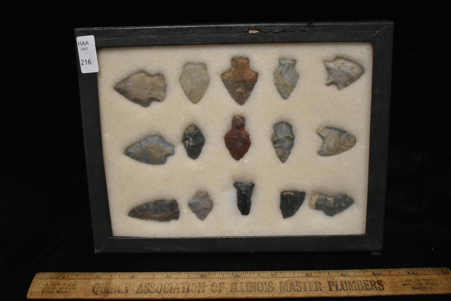 8 5/8x 6 5/8" Frame of 15 Archaic and Woodland Points, East Coast, Native American Artifacts