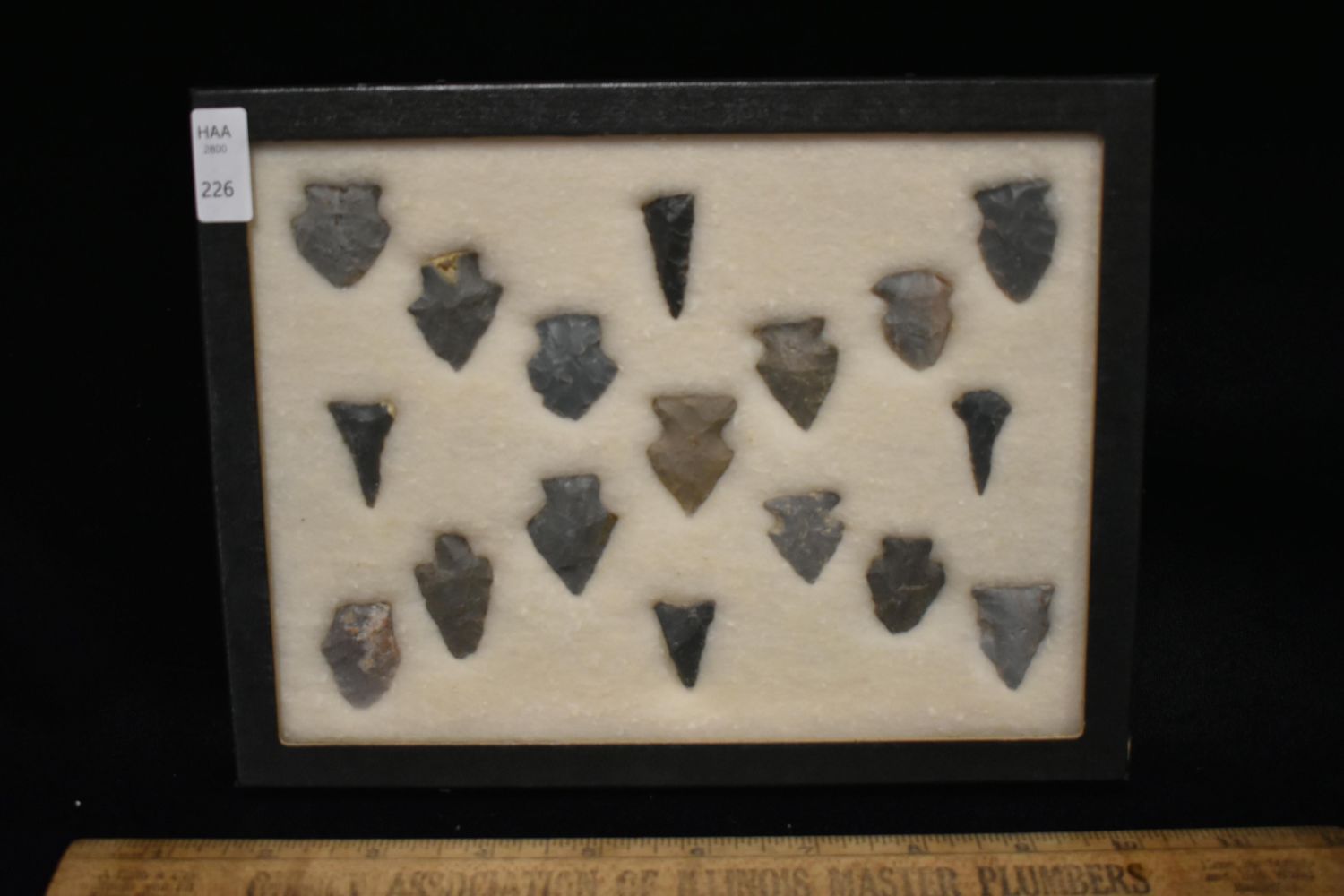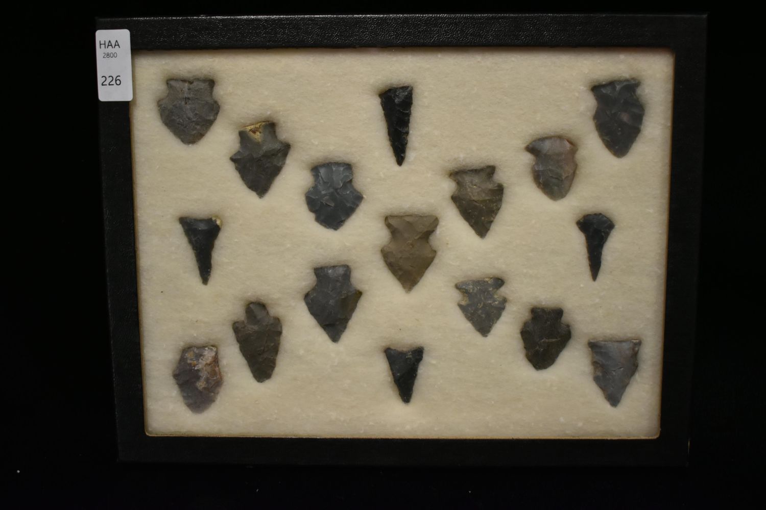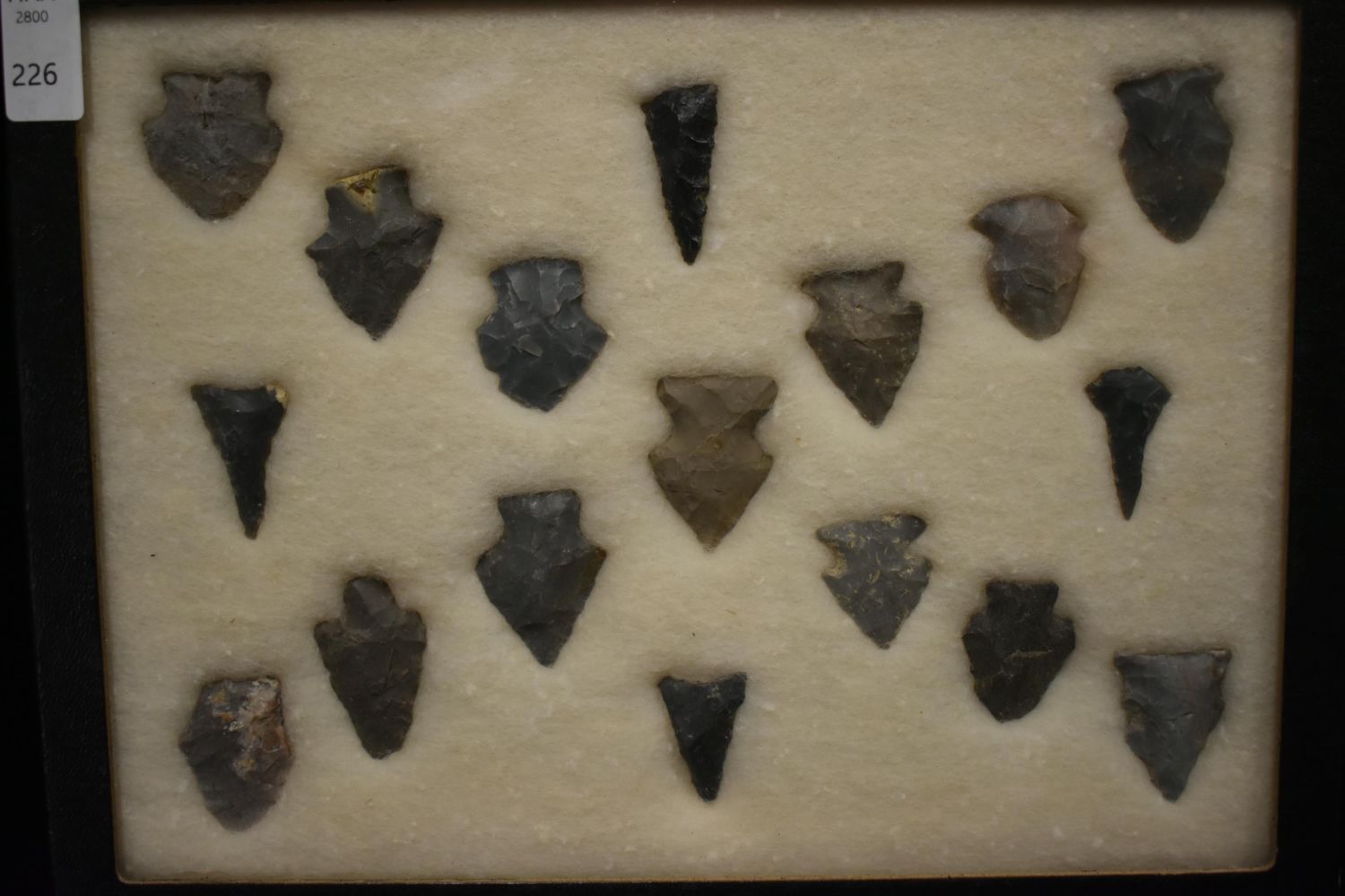 8 5/8x 6 5/8" Frame of 17 Archaic and Woodland Points, East Coast, Native American Artifacts