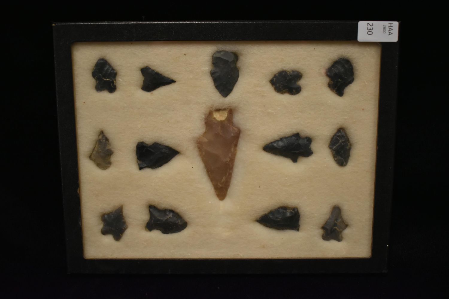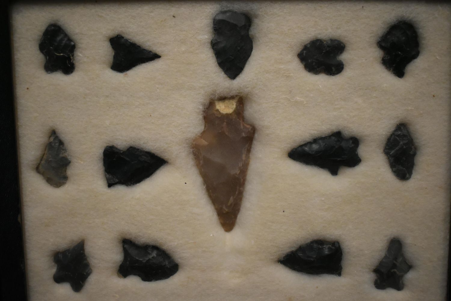 8 5/8x 6 5/8" Frame of 14 Woodland and Archaic Points, East Coast, Native American Artifacts