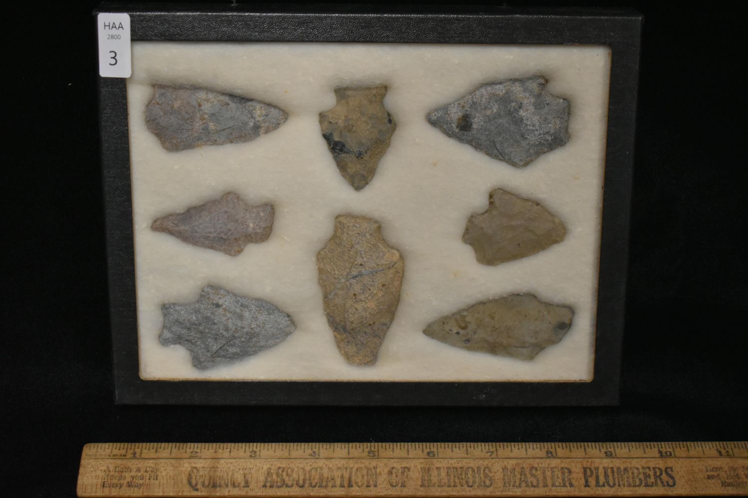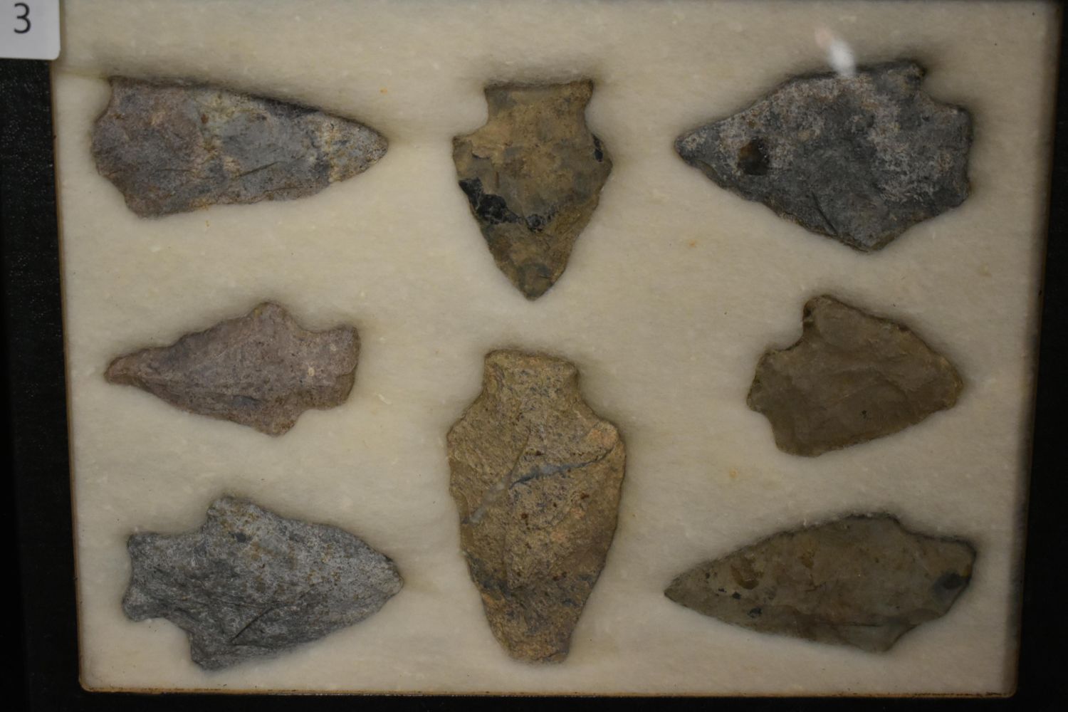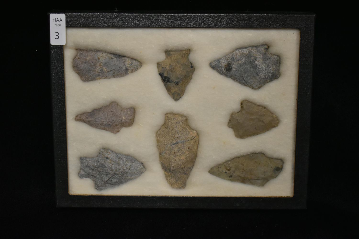 10 5/8x 6 5/8" Frame of 8 Archaic and Woodland Rylite Points, East Coast, Native American Artifacts