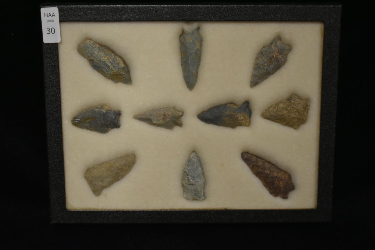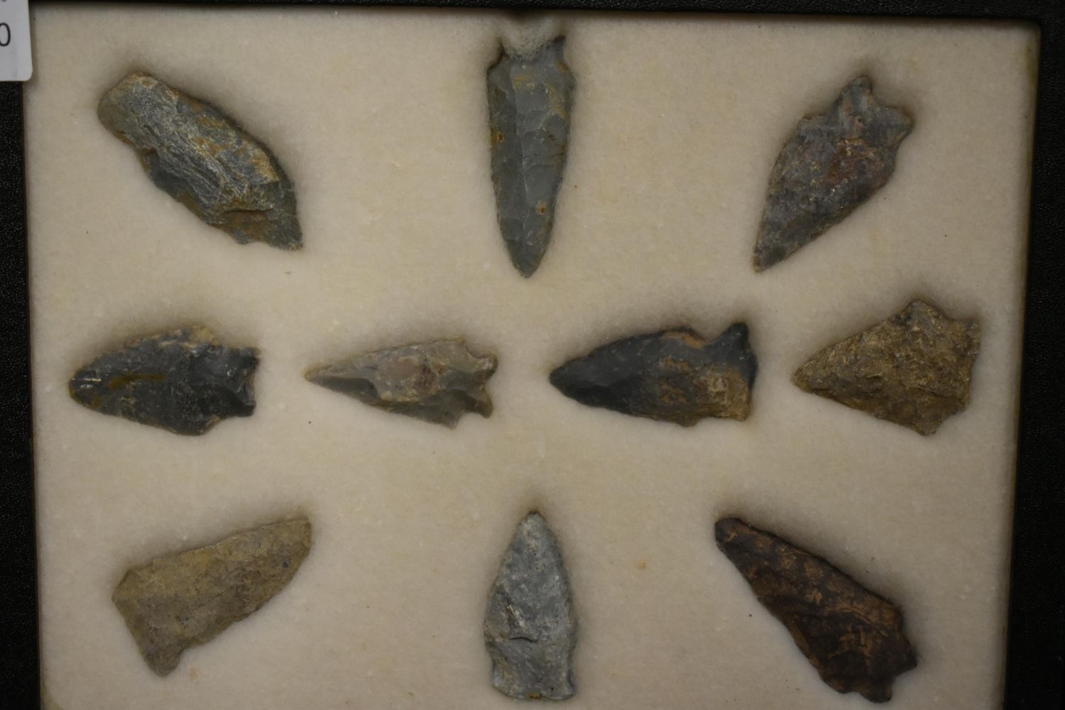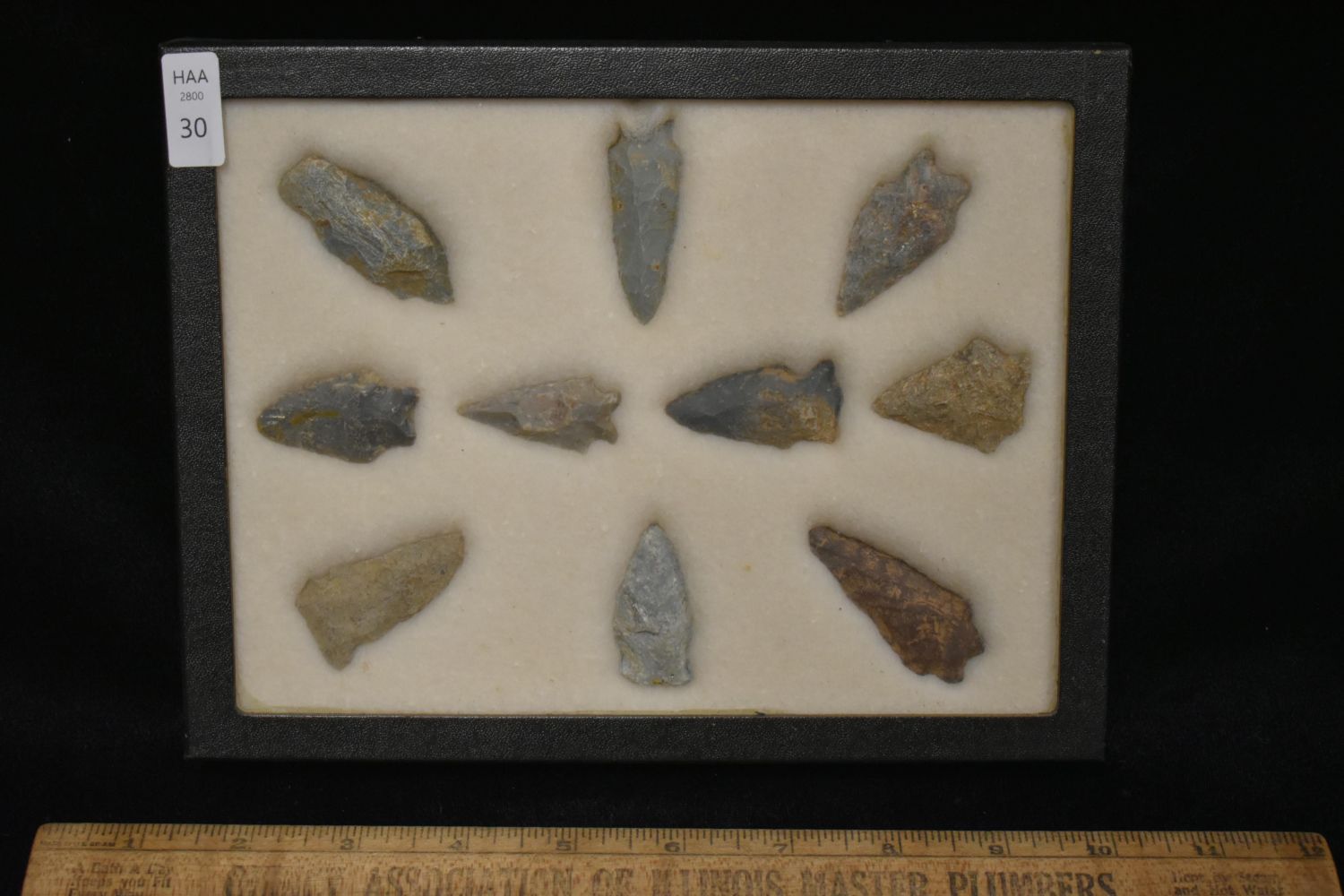 37 5/8x 6 5/8" Frame of 10 Archaic and Woodland Points, East Coast, Native American Artifacts