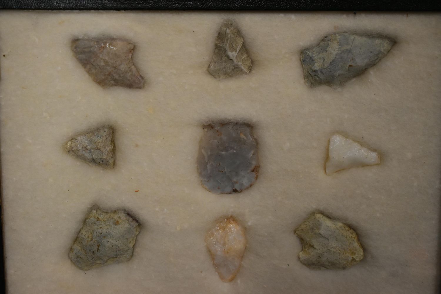 8 5/8x 6 5/8" Frame of 9 Archaic and Woodland Points, East Coast, Native American Artifacts