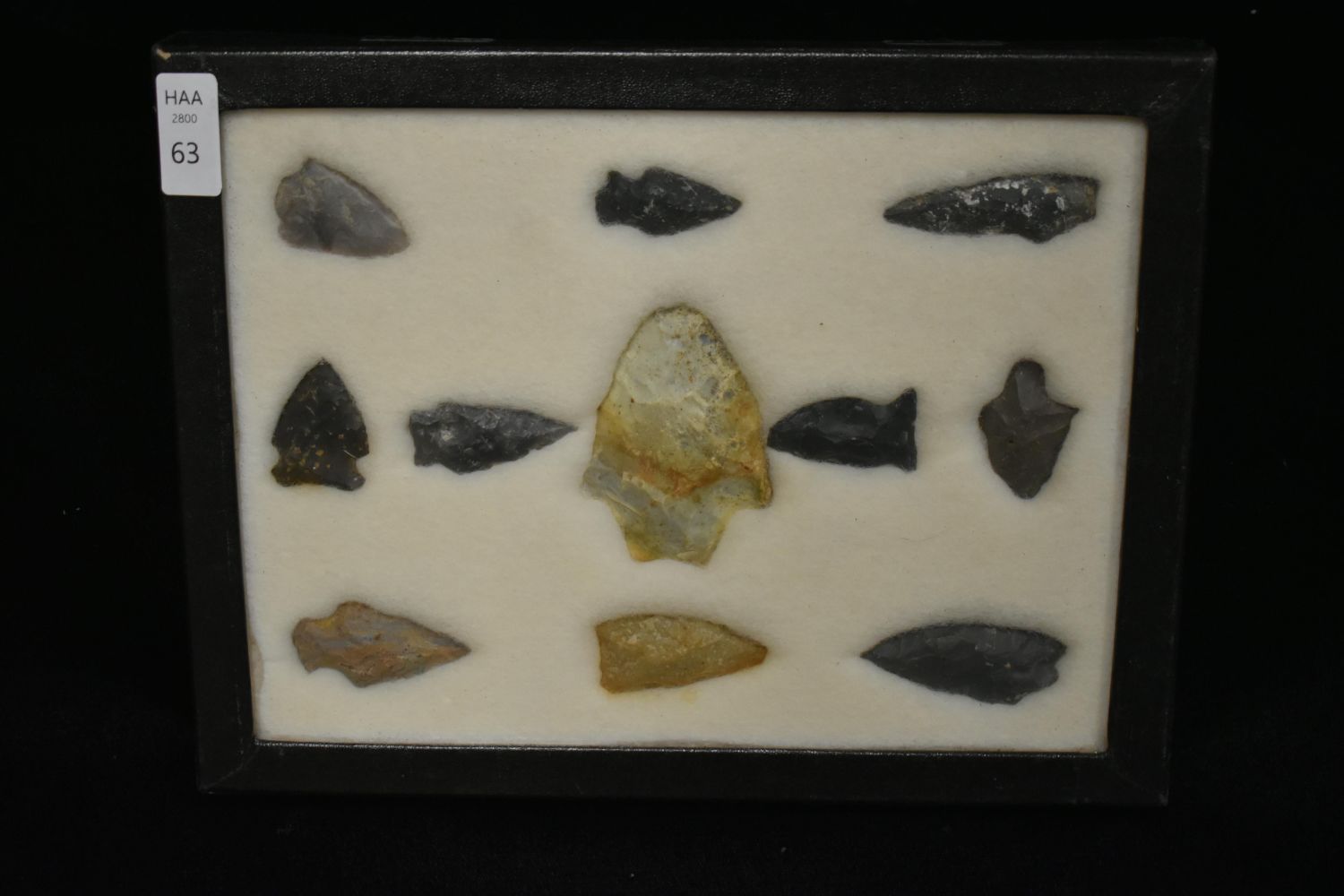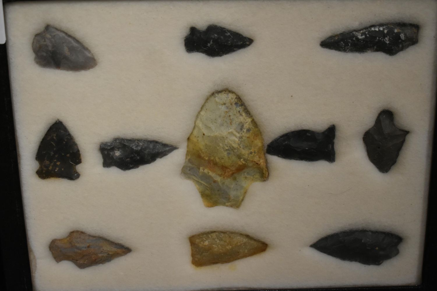 8 5/8x 6 5/8" Frame of 11 Archaic and Woodland Points, East Coast, Native American Artifacts