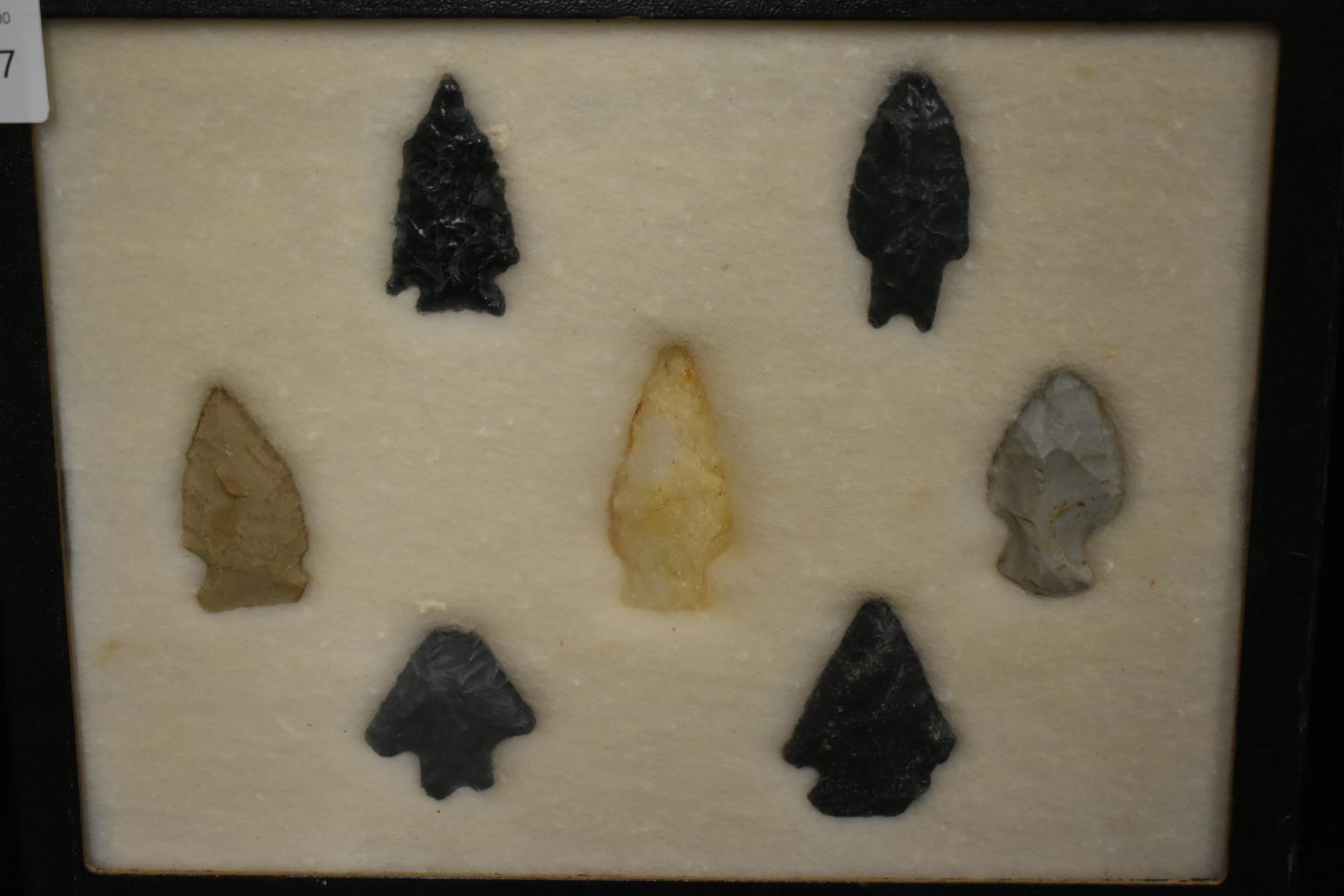 8 5/8x 6 5/8" Frame of 7 Archaic and Woodland Points, East Coast, Native American Artifacts