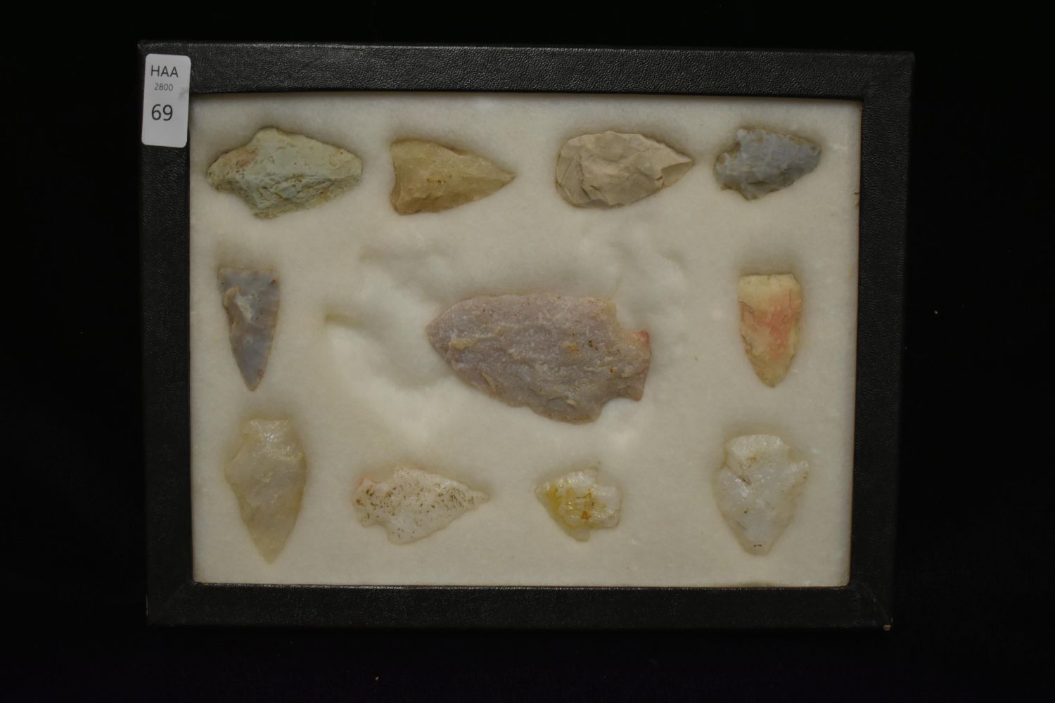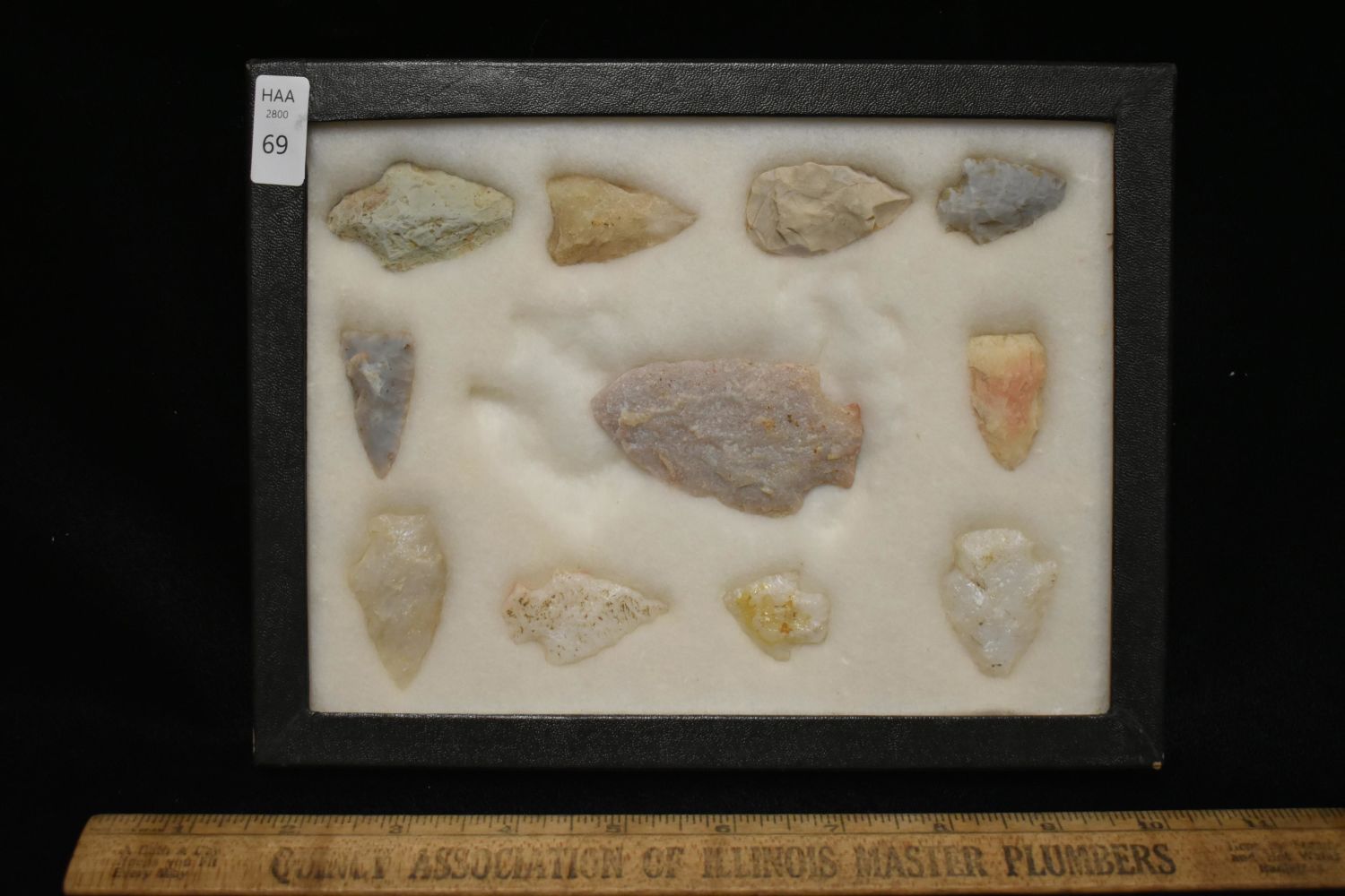 8 5/8x 6 5/8" Frame of 11 Archaic and Woodland Points, East Coast, Native American Artifacts
