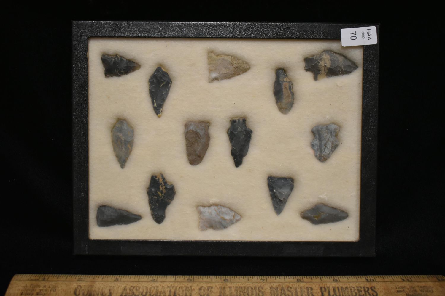 8 5/8x 6 5/8" Frame of 14 Archaic and Woodland Points, East Coast, Native American Artifacts