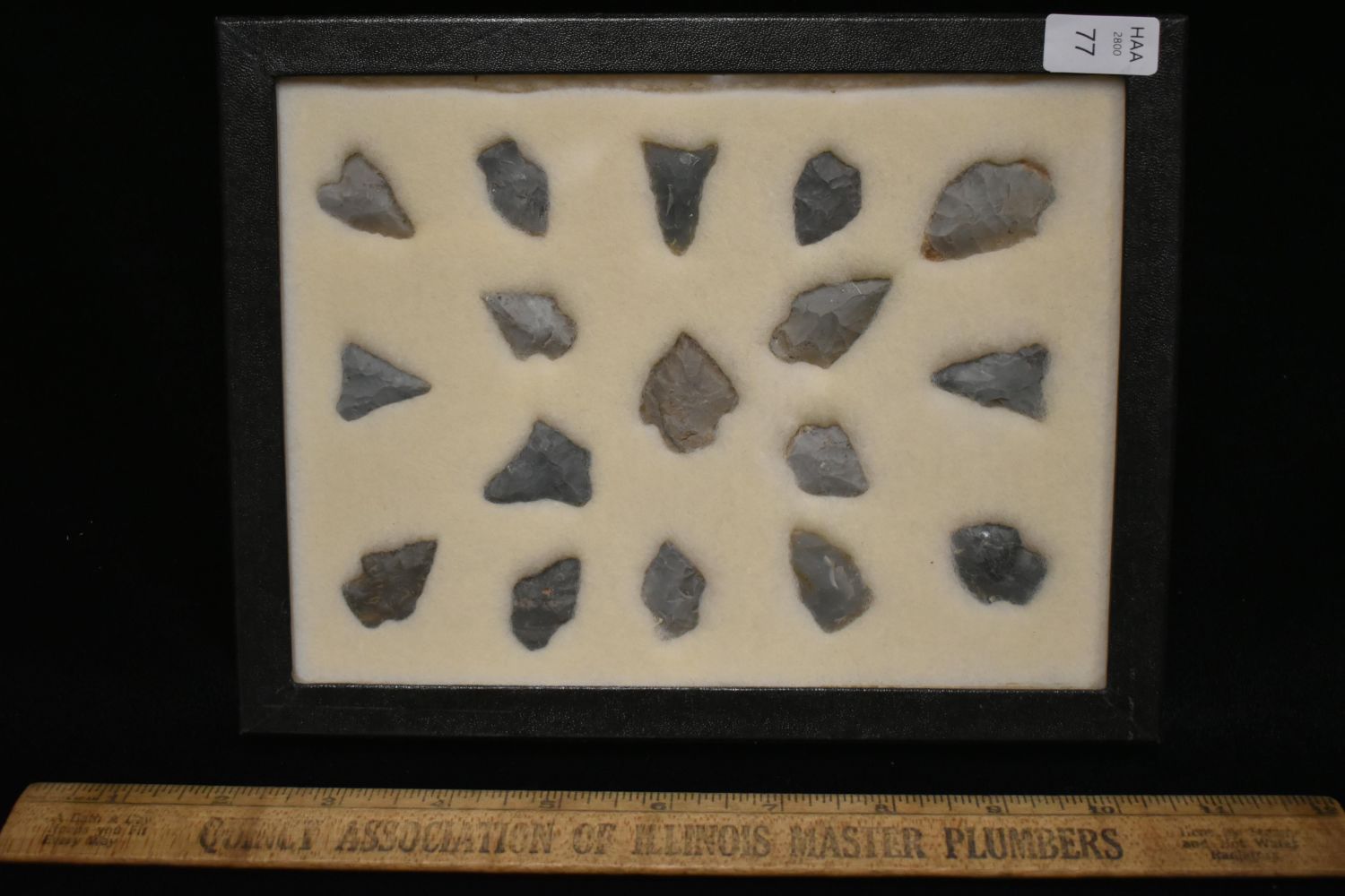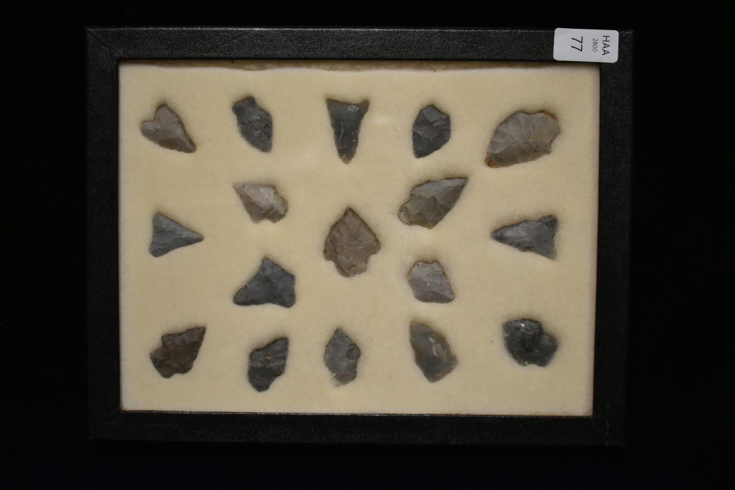 8 5/8x 6 5/8" Frame of 17 Archaic and Woodland Points, East Coast, Native American Artifacts