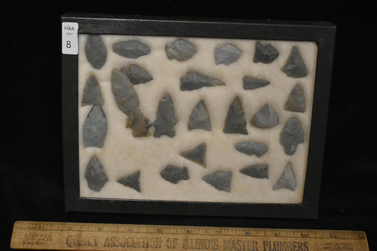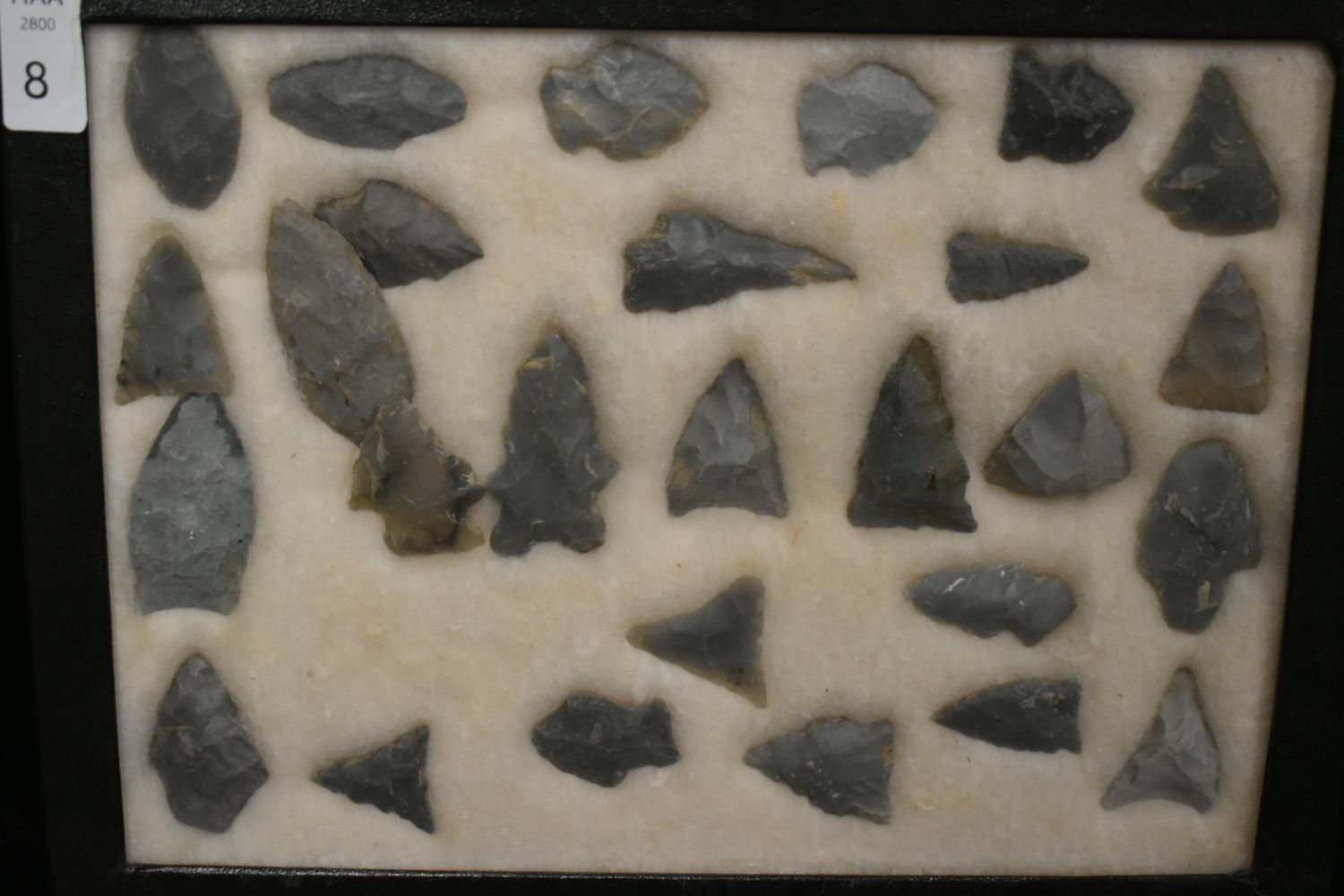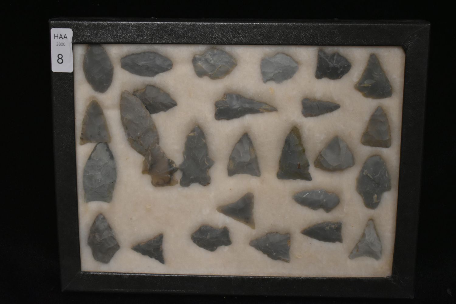 15 5/8x 6 5/8" Frame of 27 Bird Points, East Coast, Native American Artifacts