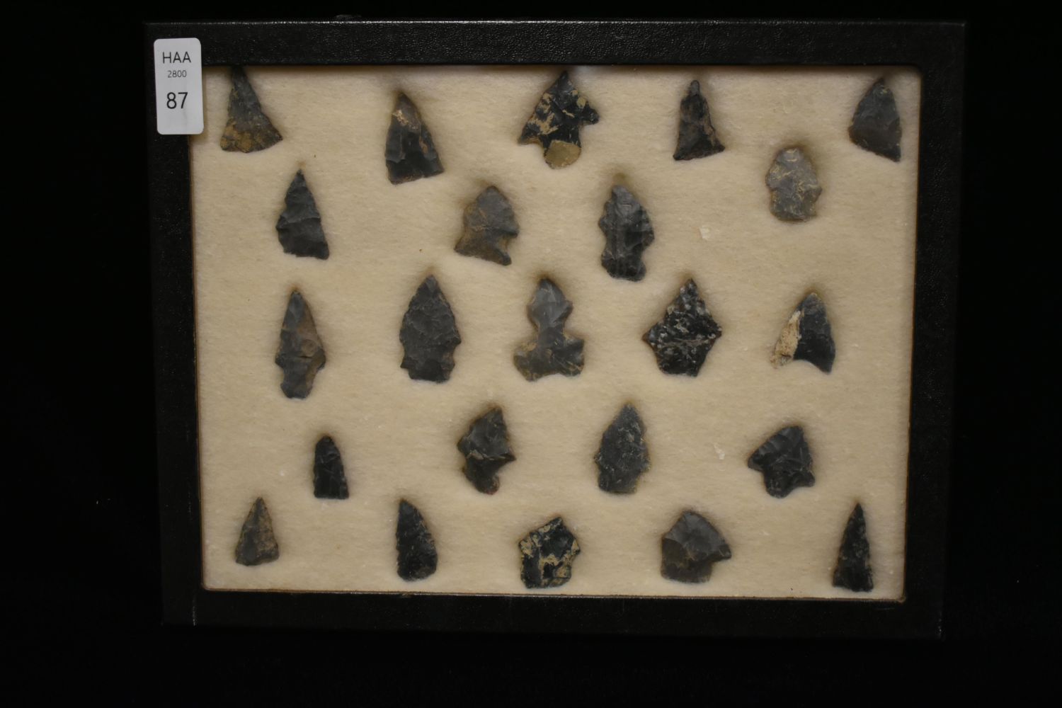 8 5/8x 6 5/8" Frame of 23 Archaic and Woodland Points, East Coast, Native American Artifacts
