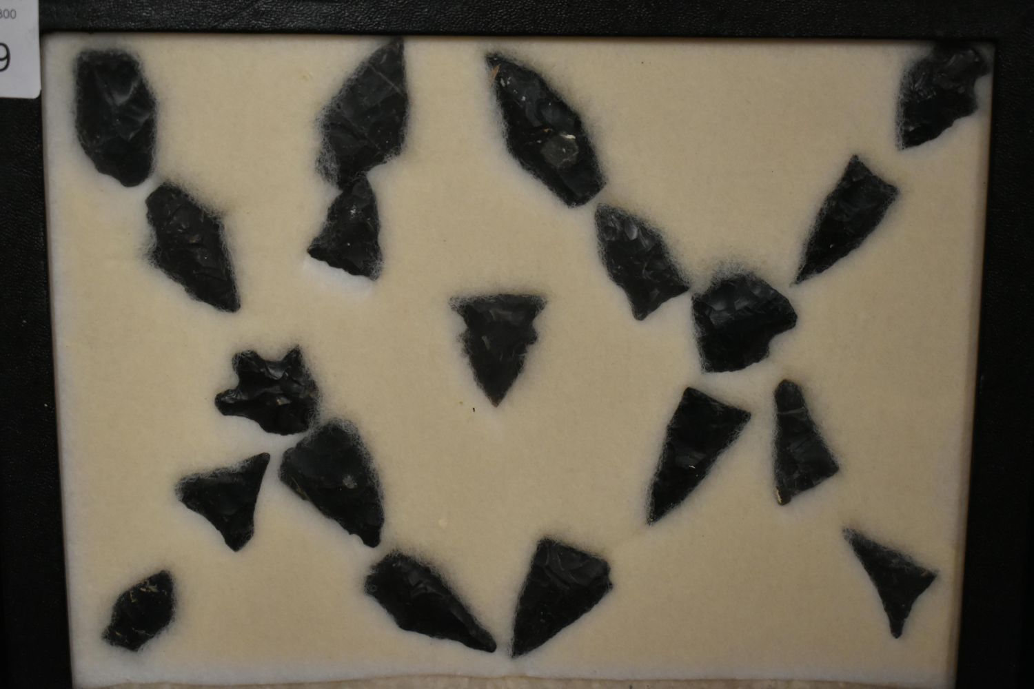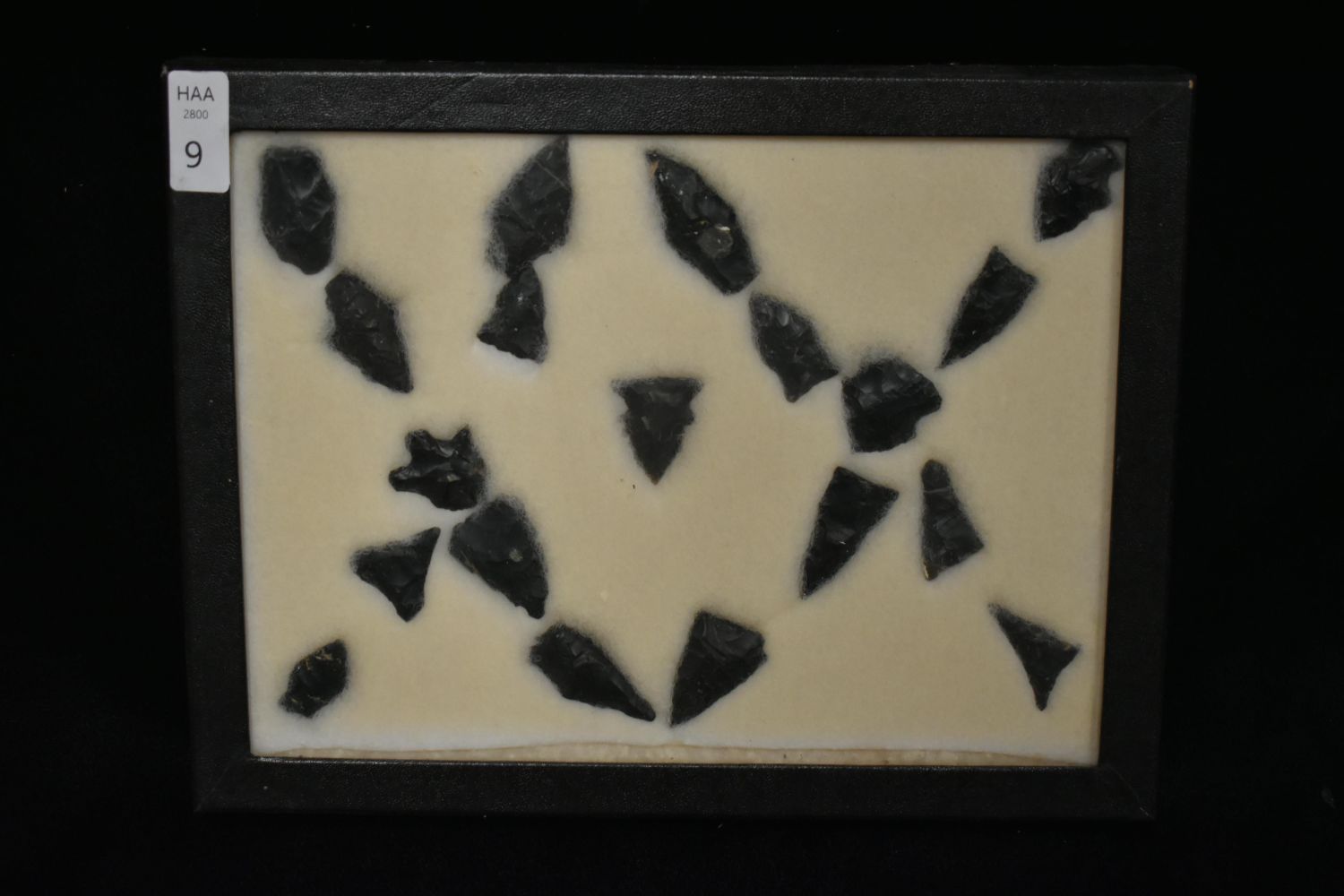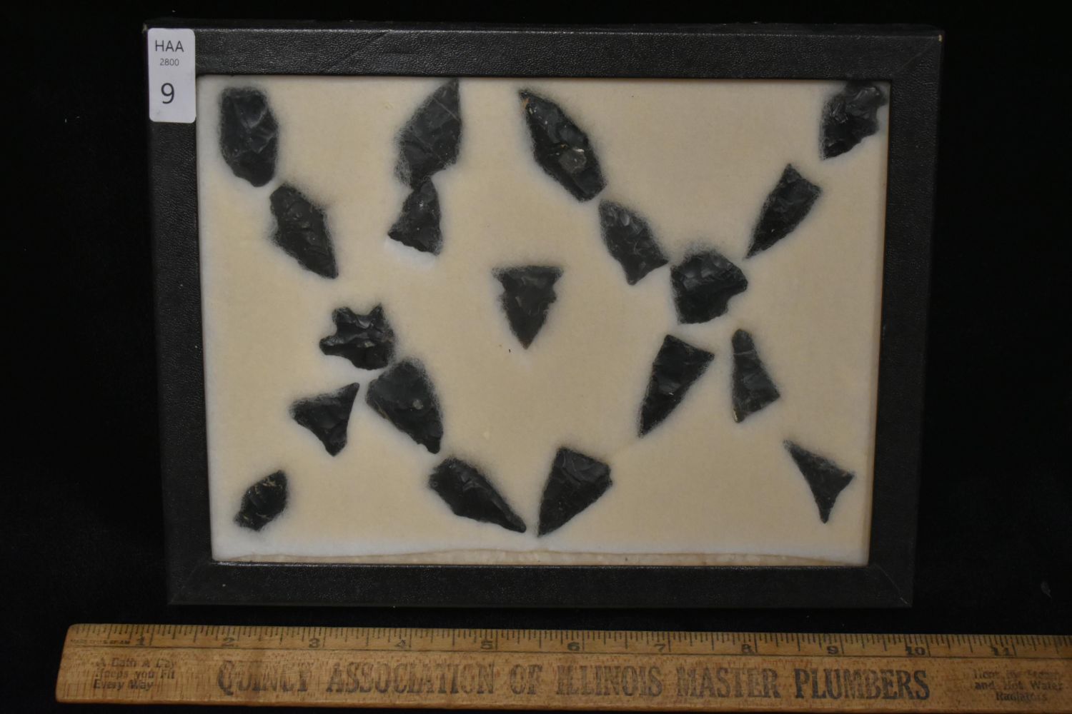 16 5/8x 6 5/8" Frame of 19 Bird points, East Coast, Native American Artifacts