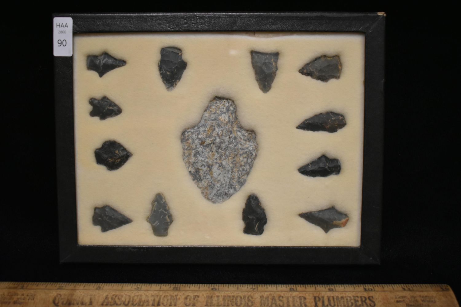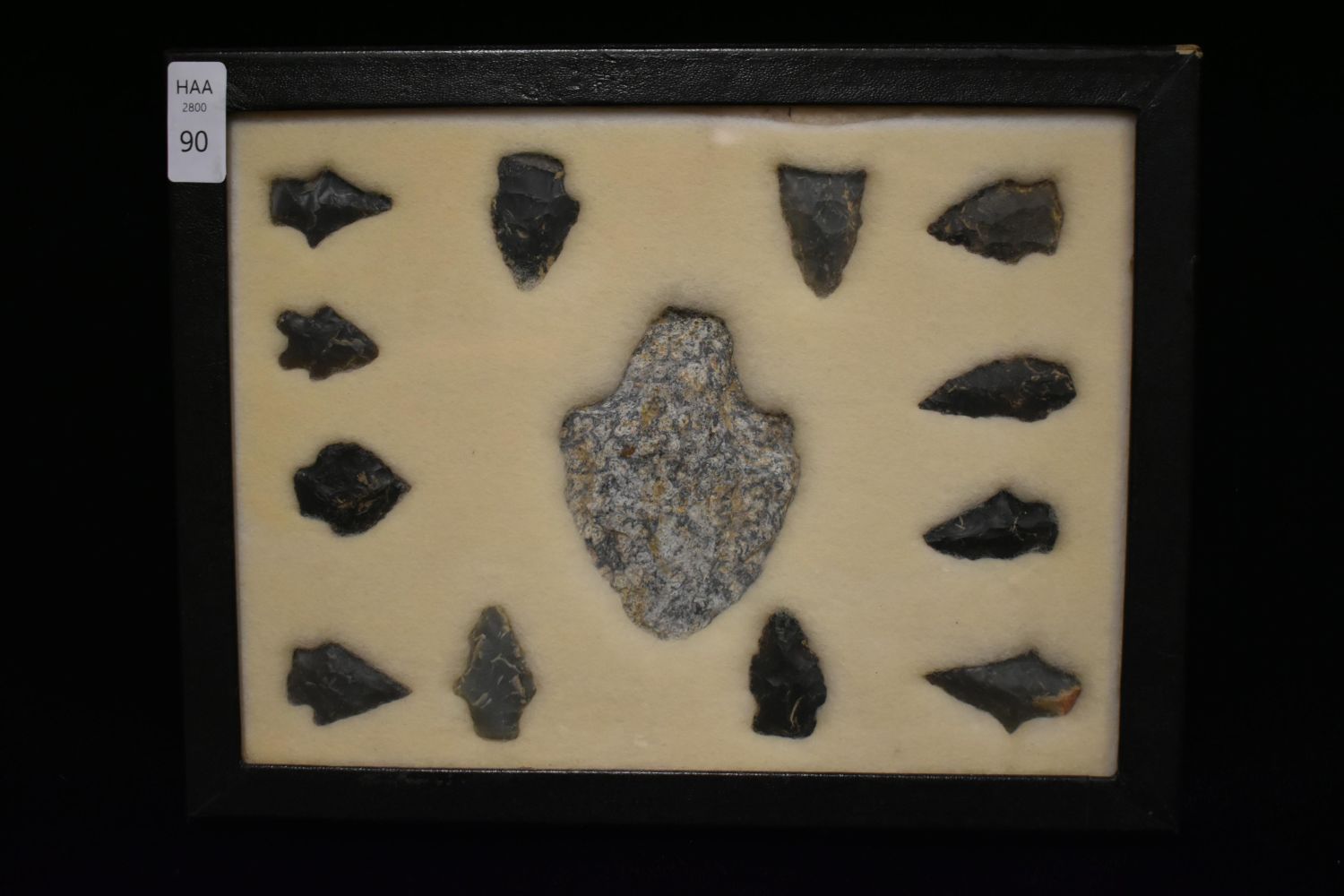 8 5/8x 6 5/8" Frame of 13 Archaic and Woodland Points, East Coast, Native American Artifacts