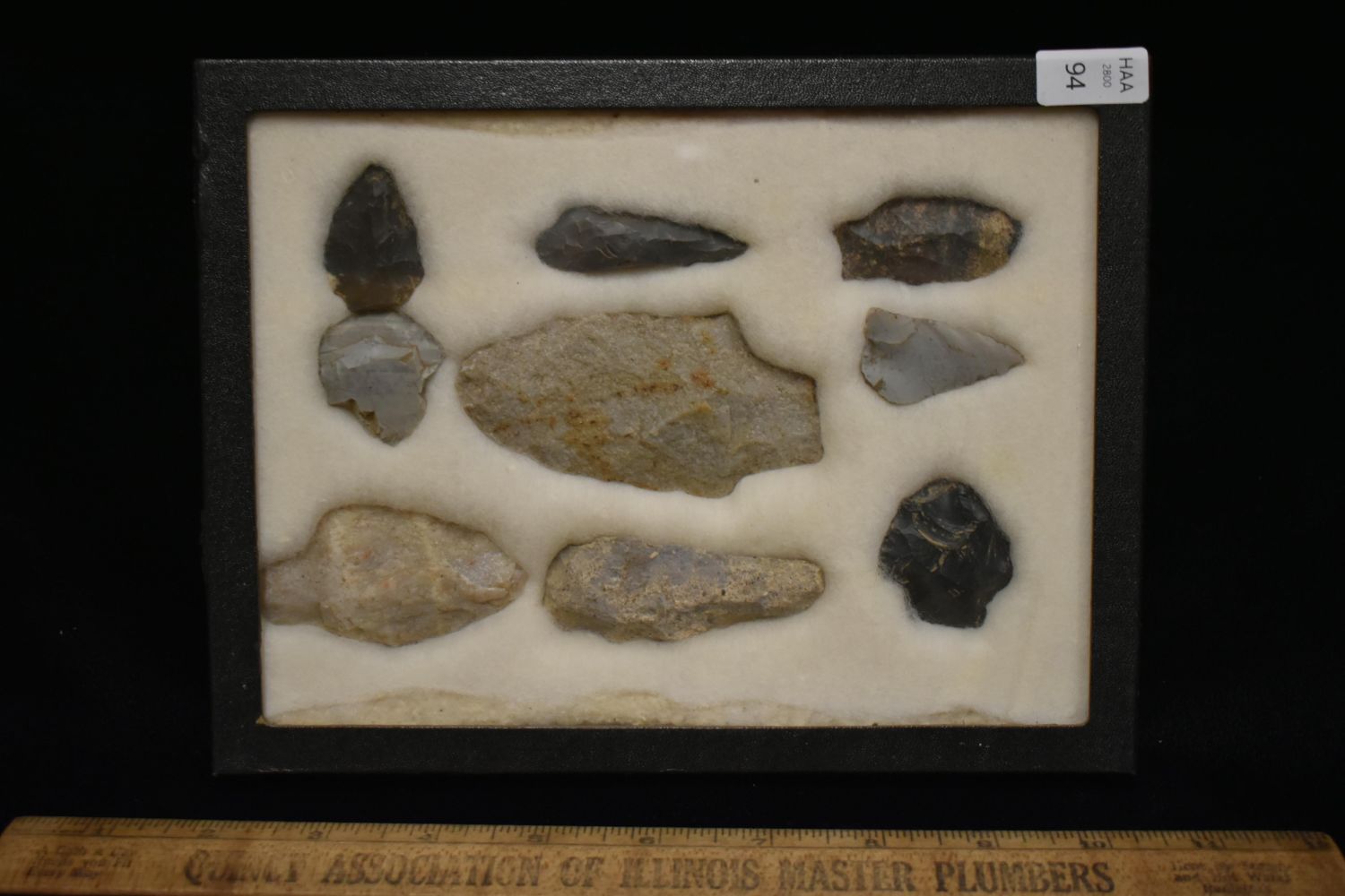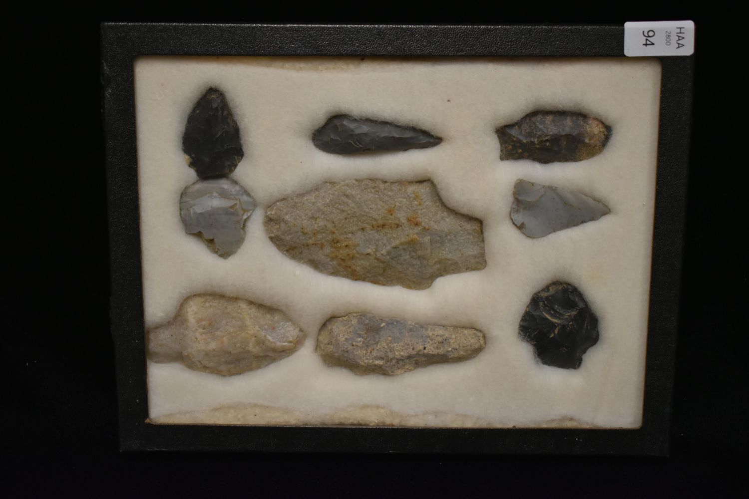 8 5/8x 6 5/8" Frame of 9 Archaic and Woodland Points, East Coast, Native American Artifacts