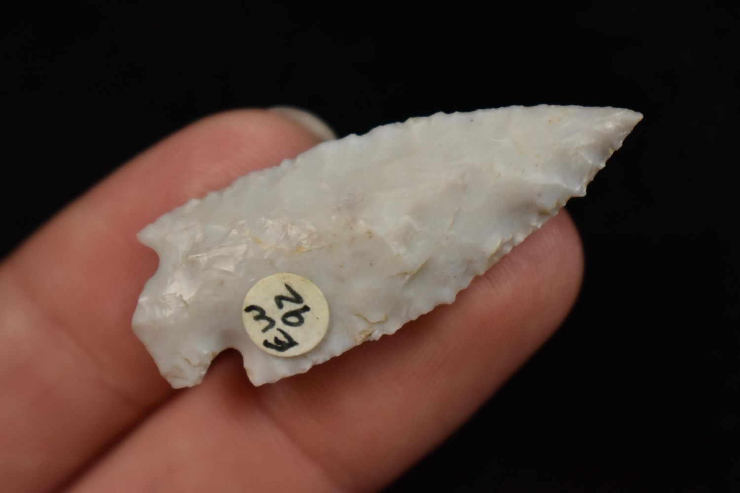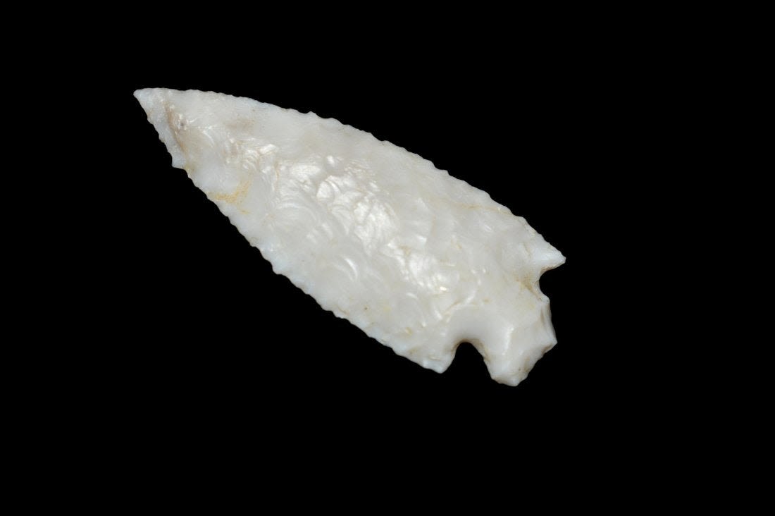 1 5/8" Bird Point Found in Lima Lake, Adams County IL by Ed Wilcox in 1992. Native American Artifact