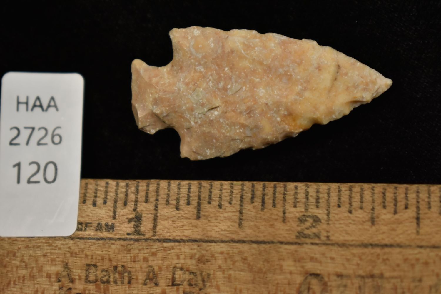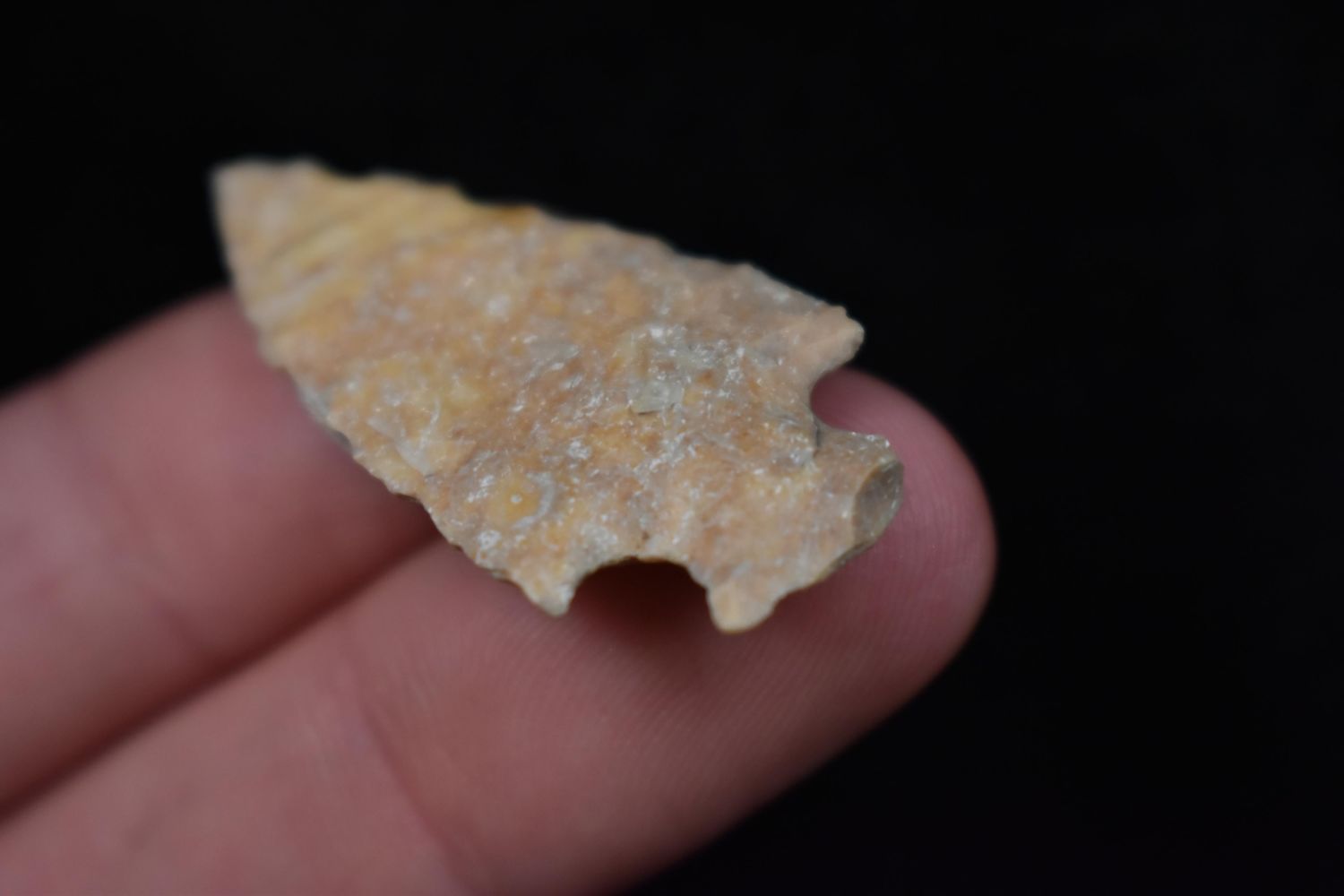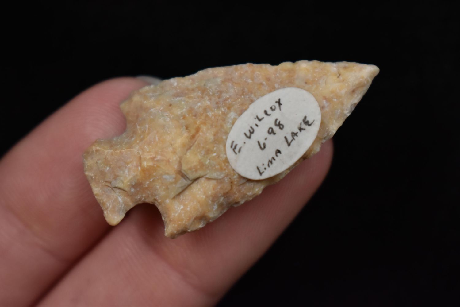 1 1/2" Bird Point Found in Lima Lake, Adams County IL by Ed Wilcox in 1998. Native American Artifact
